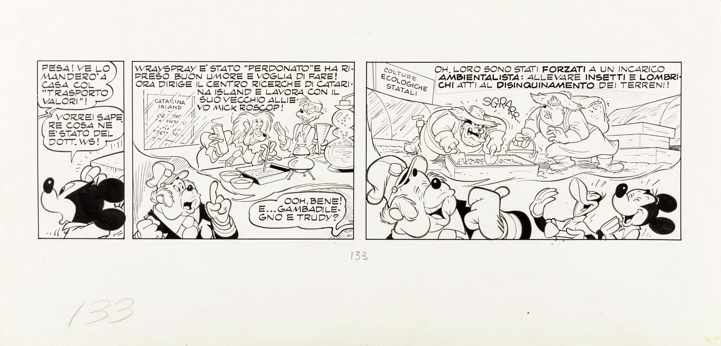 1990 Tavola originale realizzata da Scarpa per la strip-story Topolino e l’enigma di Brigaboom, tav. 133 edita su Topolino n. 1791 nel Marzo 1990.