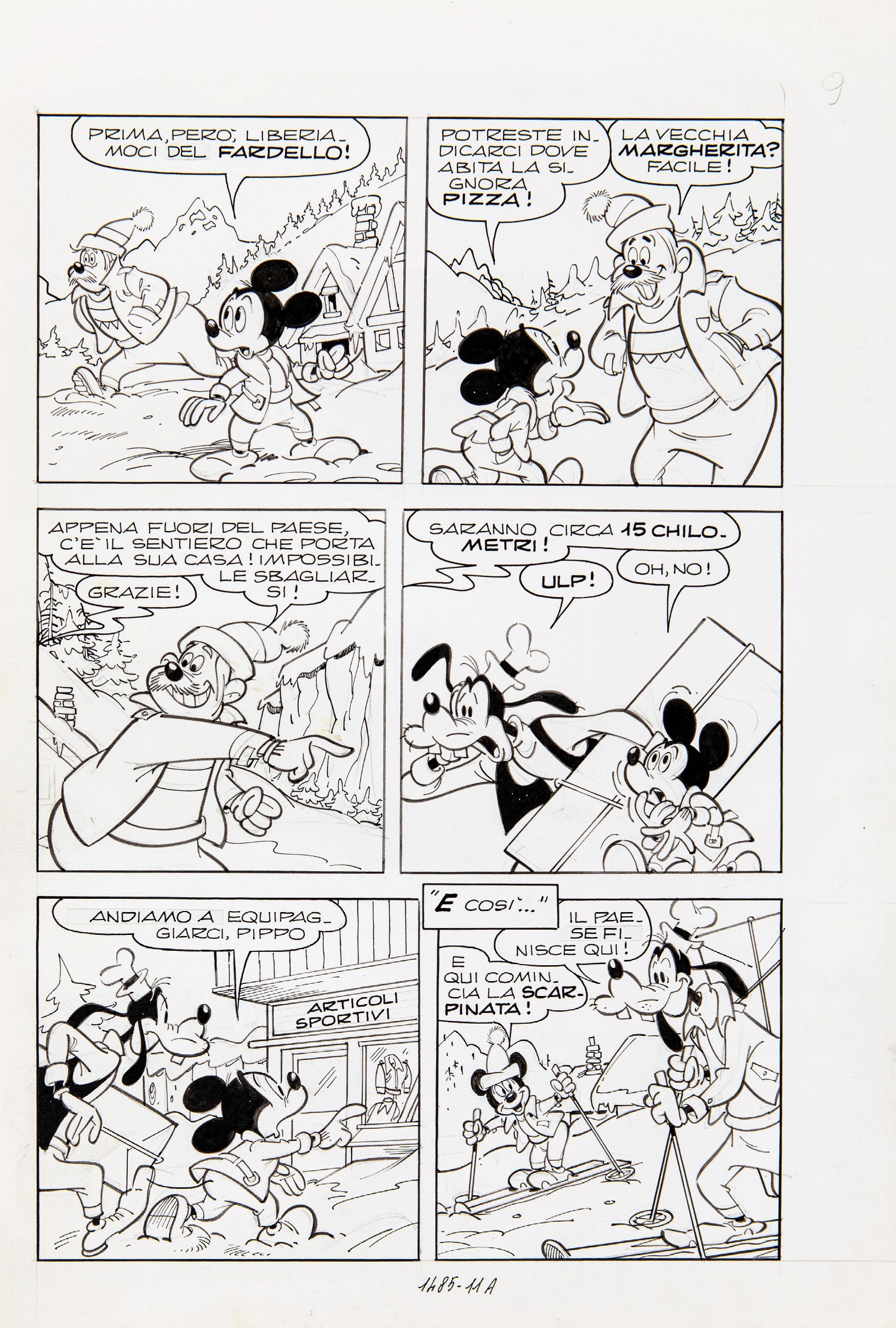 1984 Tavola originale realizzata da Carpi per Topolino e lo stendardo perduto, edita su Topolino n. 1485 a pag. 9 nel Maggio 1984.