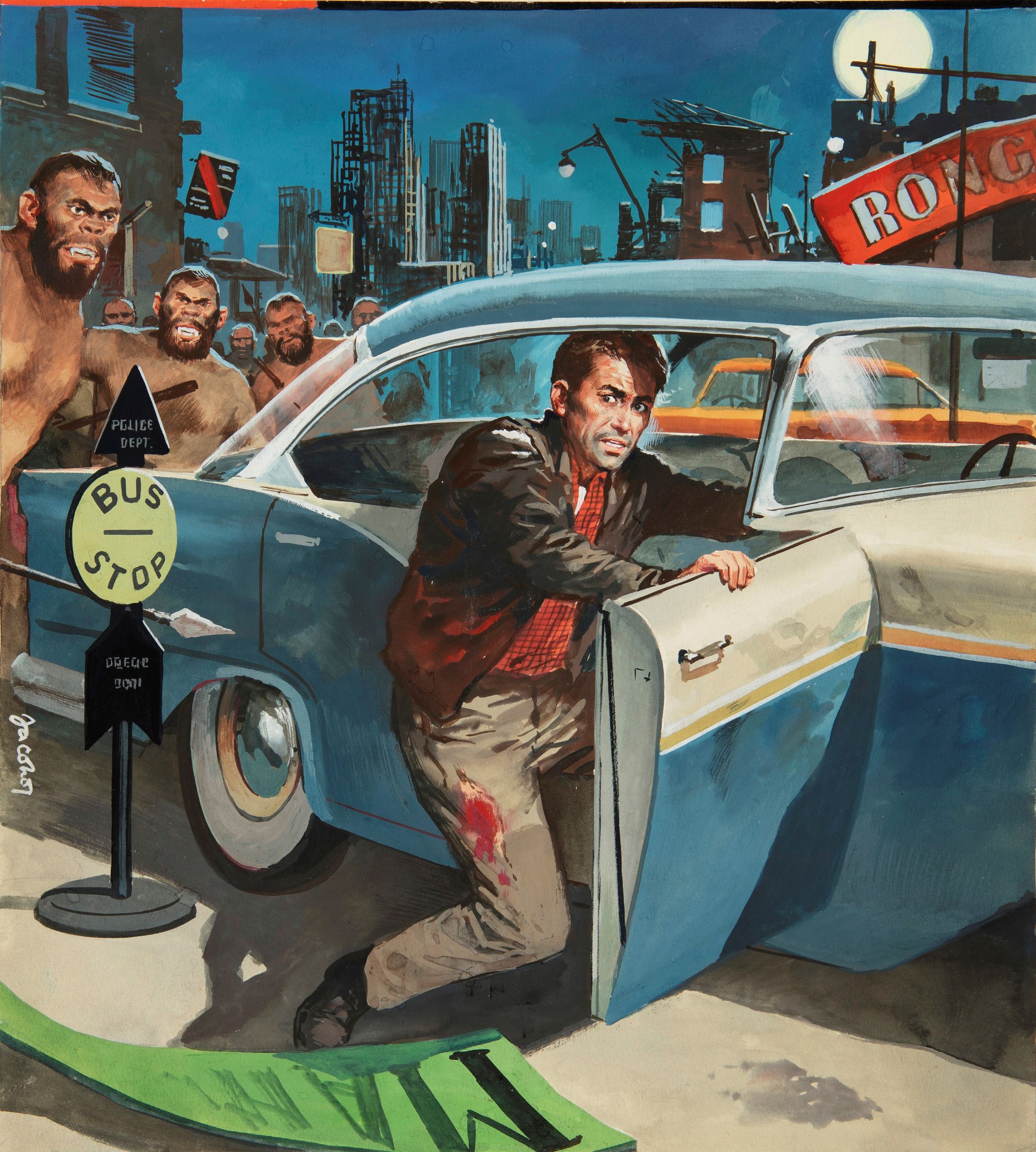 1960 Originale di copertina realizzato da Jacono per il romanzo La seconda Terra di R. L. Bowers, edito nella celebre collana Urania n. 230 dalla Mondadori nel 1960. Firmato.