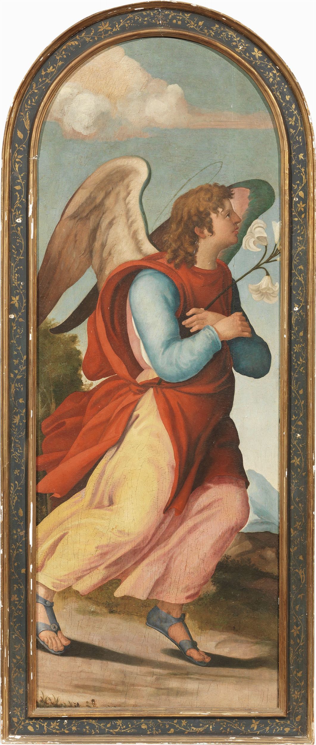 Olio su tavola centinata, dittico, cm. 162x61 e cm. 161x59