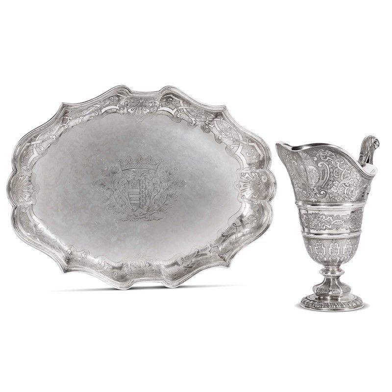 A SILVER BASIN AND EWER, ROME, HALF OF 18 TH CENTURY, MARK OF ANGELO SPINAZZI