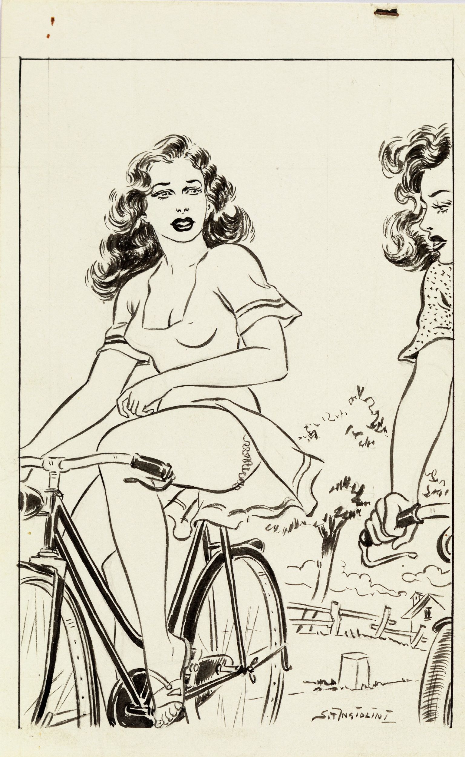 Sandro Angiolini : Amiche in bicicletta  - Asta Fumetti: i Maestri dell'Erotismo - Associazione Nazionale - Case d'Asta italiane