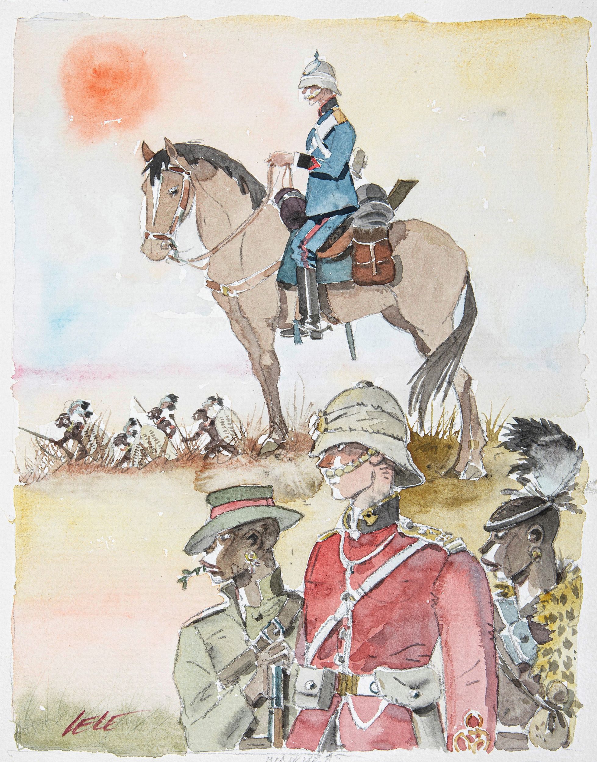 matita, china e acquerello su cartoncino, 28 x 35,5 cm 2010 Illustrazione originale realizzata da Vianello nel 2010 come omaggio al suo maestro Hugo Pratt, pubblicata sul volume Lele Vianello dalle Edizioni Segni d’Autore nel 2013. Firmata al fronte e firmata e datata al retro.