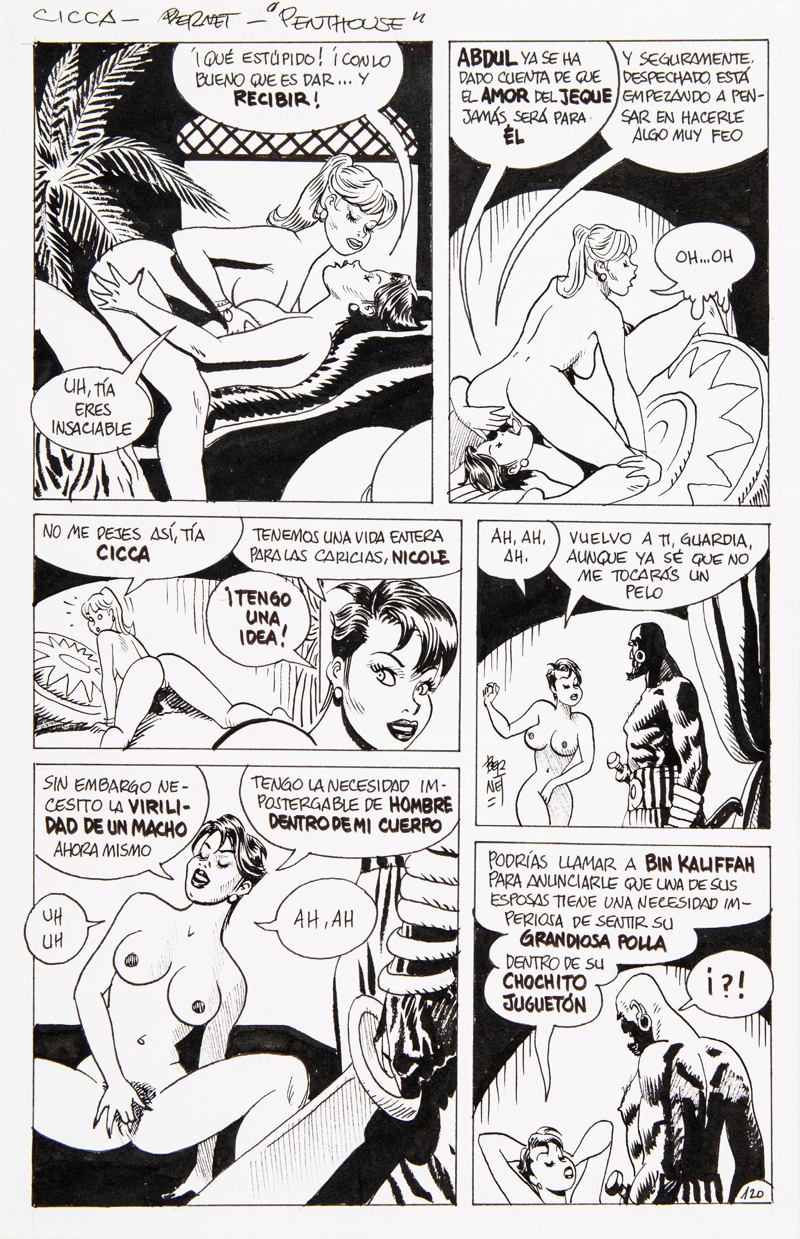 1998 Tavola originale realizzata da Bernet per Cicca Dum-Dum, edita per la prima volta sulla rivista Penthouse alla fine degli anni '90. Firmata.