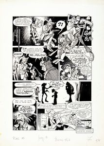 matita e china su cartoncino, 35 x 50 cm 1983 Tavola originale realizzata da Micheluzzi per La bionda e il pilota, [..]
