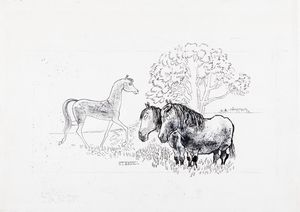 tempera e acquerello su cartoncino, 24 x 31 cm anni '70 Firmato.