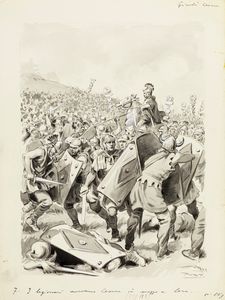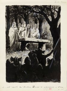 tempera su cartone, 22,5 x 30 cm 1952 Illustrazione originale realizzata da Natoli per Il romanzo di Giulio Cesare [..]