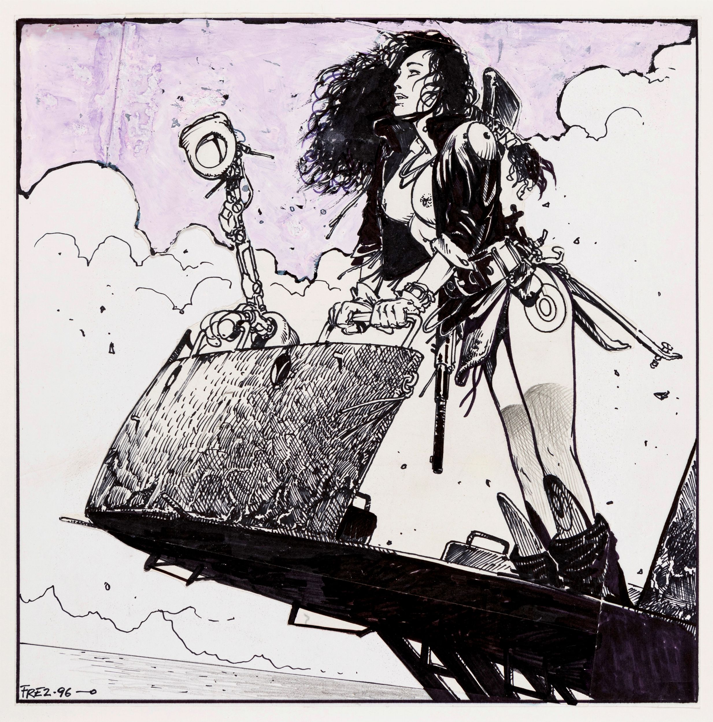 1996 Illustrazione originale realizzata da Frezzato come studio per il suo celebre dipinto pubblicato negli U.S.A. nel calendario Heavy Metal Calendar 1998. Firmata e datata.