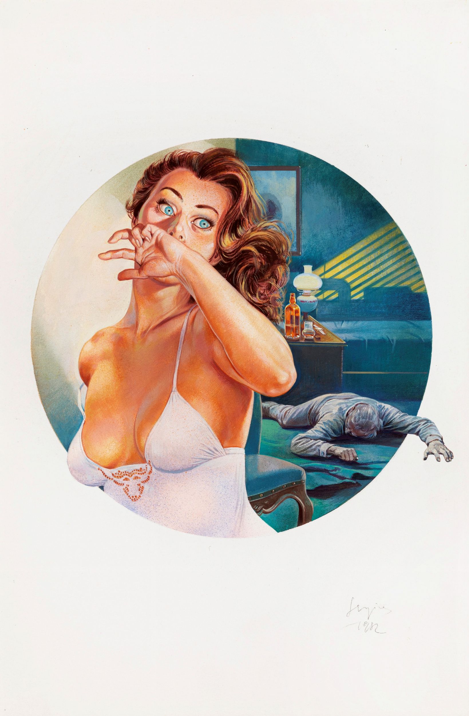 1982 Originale di copertina realizzato da Rizzato per il romanzo Lo zio buonanima di Ellery Queen, edito nella collana I Classici del Giallo n. 419 dalla Mondadori nel 1983. Firmato e datato.
