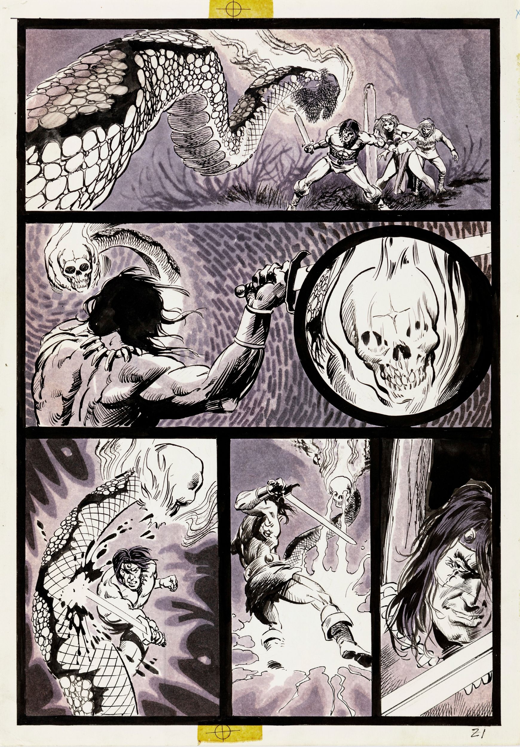1975 Tavola originale realizzata da Alcázar per The Omen in the Skull, edita su Kull and the Barbarians n. 3 a pag. 26 dalla Marvel nel 1975. Si allega la velina con i testi.