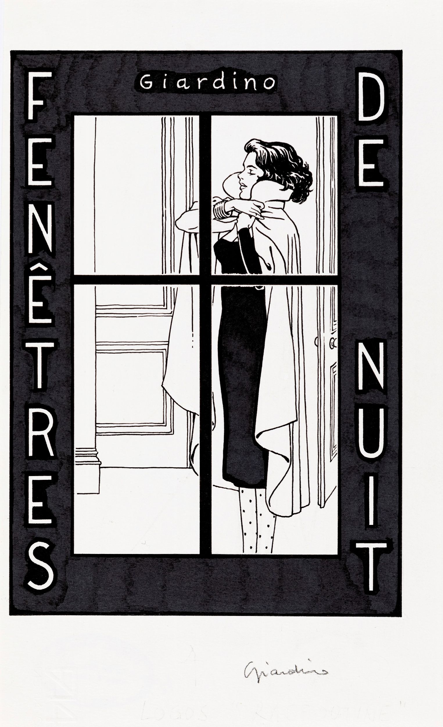 matita e china su cartoncino, 19 x 31 cm 1998 Originale di copertina realizzato da Giardino per il cofanetto del portfolio Fenêtres de nuit contenente 8 serigrafie a colori e stampato dalla celebre libreria Raspoutine di Losanna in soli 200 esemplari nel 1998. Giardino mette in scena la turbolenta notte di un disegnatore (un palese autoritratto) sorpreso a spiare dalla finestra una bellissima fanciulla che diventa inconsapevolmente la sua musa ispiratrice fino ad un brusco epilogo. Firmata al fronte e al retro con timbro dell'artista.
