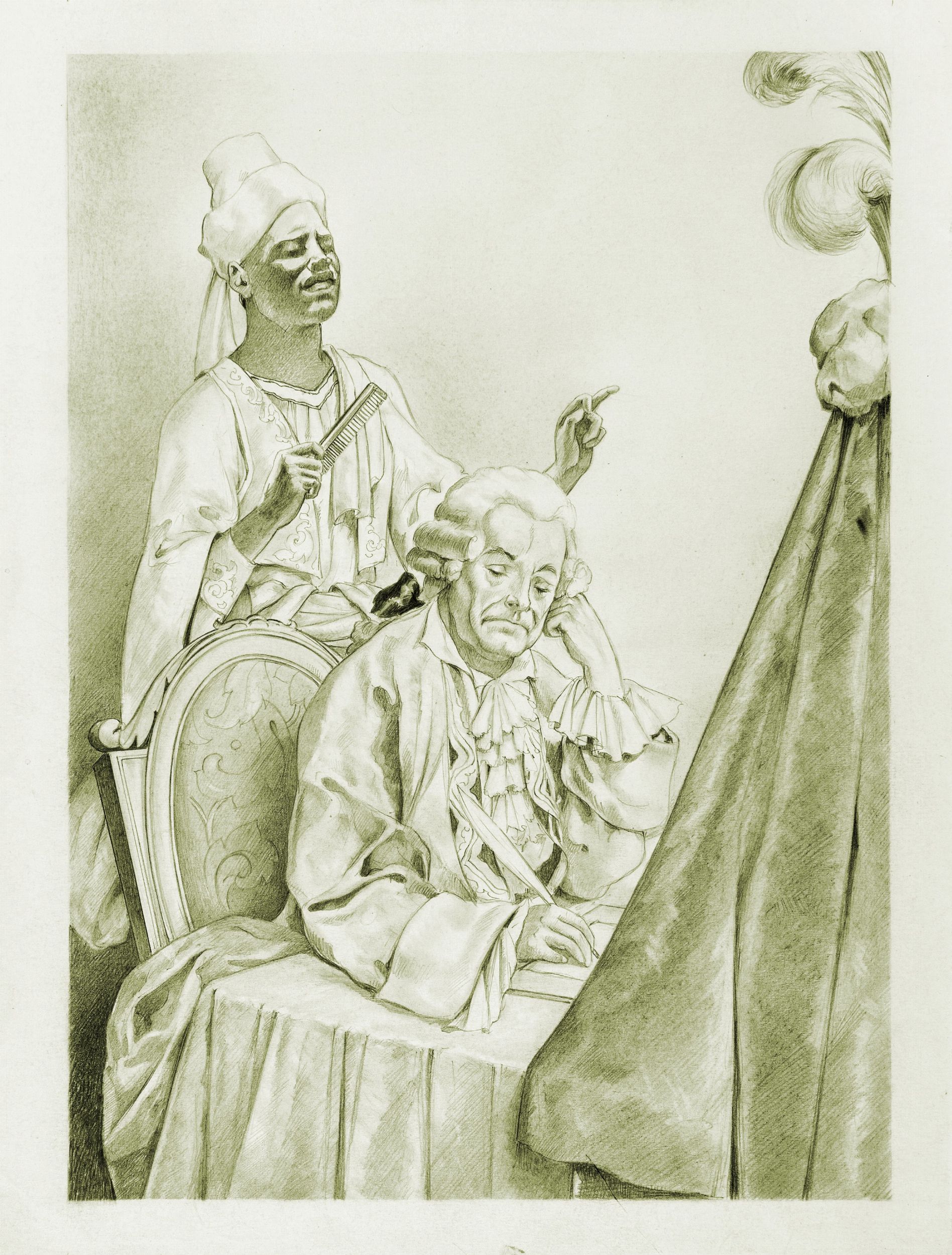 1950 Illustrazione originale realizzata da Brunelleschi per Memoires de Jacques Casanova de Seingalt edito in Francia da Gibert Jeune nel 1950.