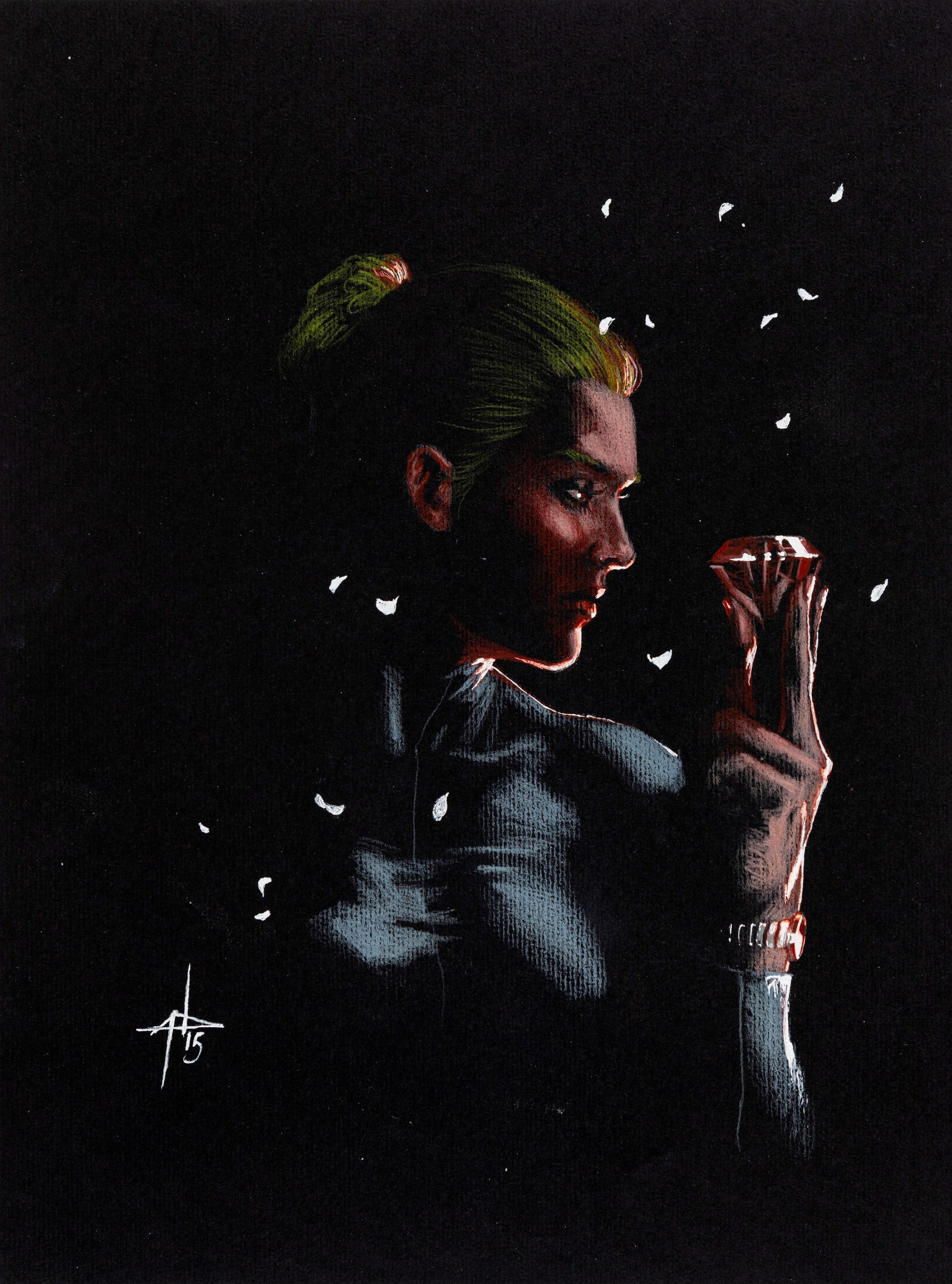 2015 Illustrazione originale realizzata da Dell’Otto in occasione della mostra Out of Darkness, tenutasi presso la Cart Gallery di Roma nel 2015. Firmata e datata.
