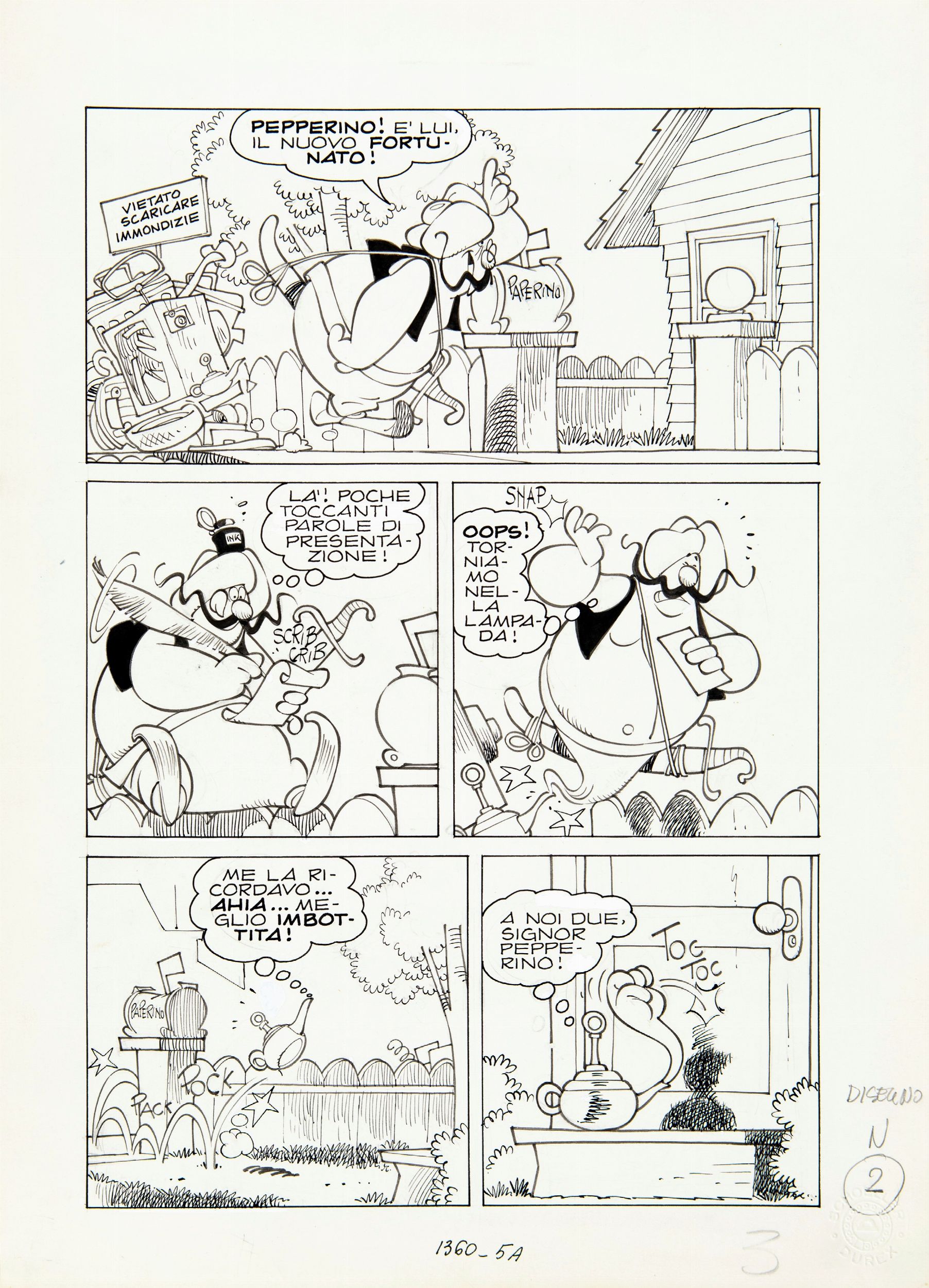 1981 Tavola originale realizzata da Cavazzano per Paperino e il genio maldestro, edita su Topolino n. 1360 a pag. 5 nel Dicembre 1981.