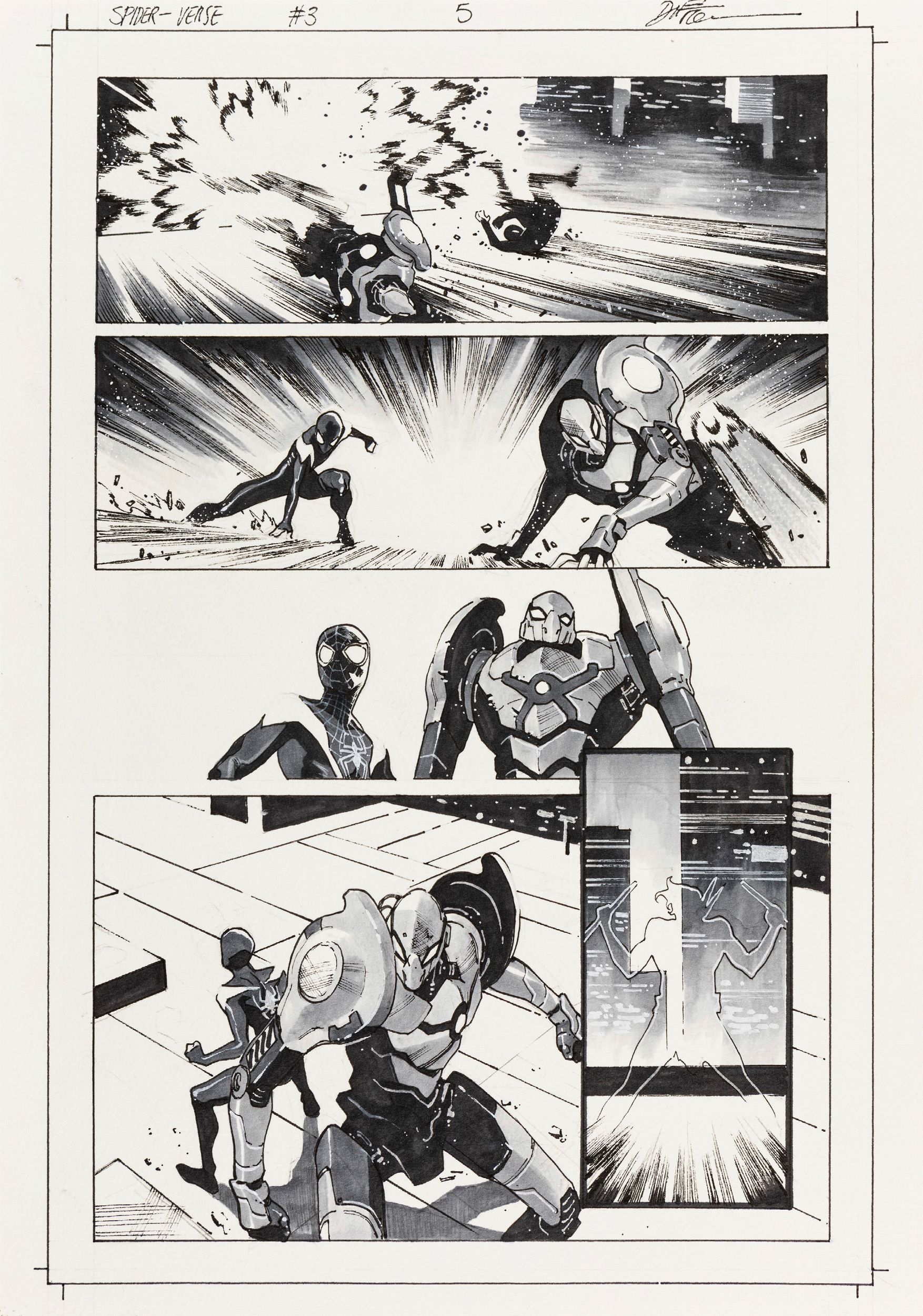 2020 Tavola originale realizzata da Ruan per il terzo volume della miniserie Spider-Verse, edita a pag. 5 dalla Marvel nel 2020. Firmata.