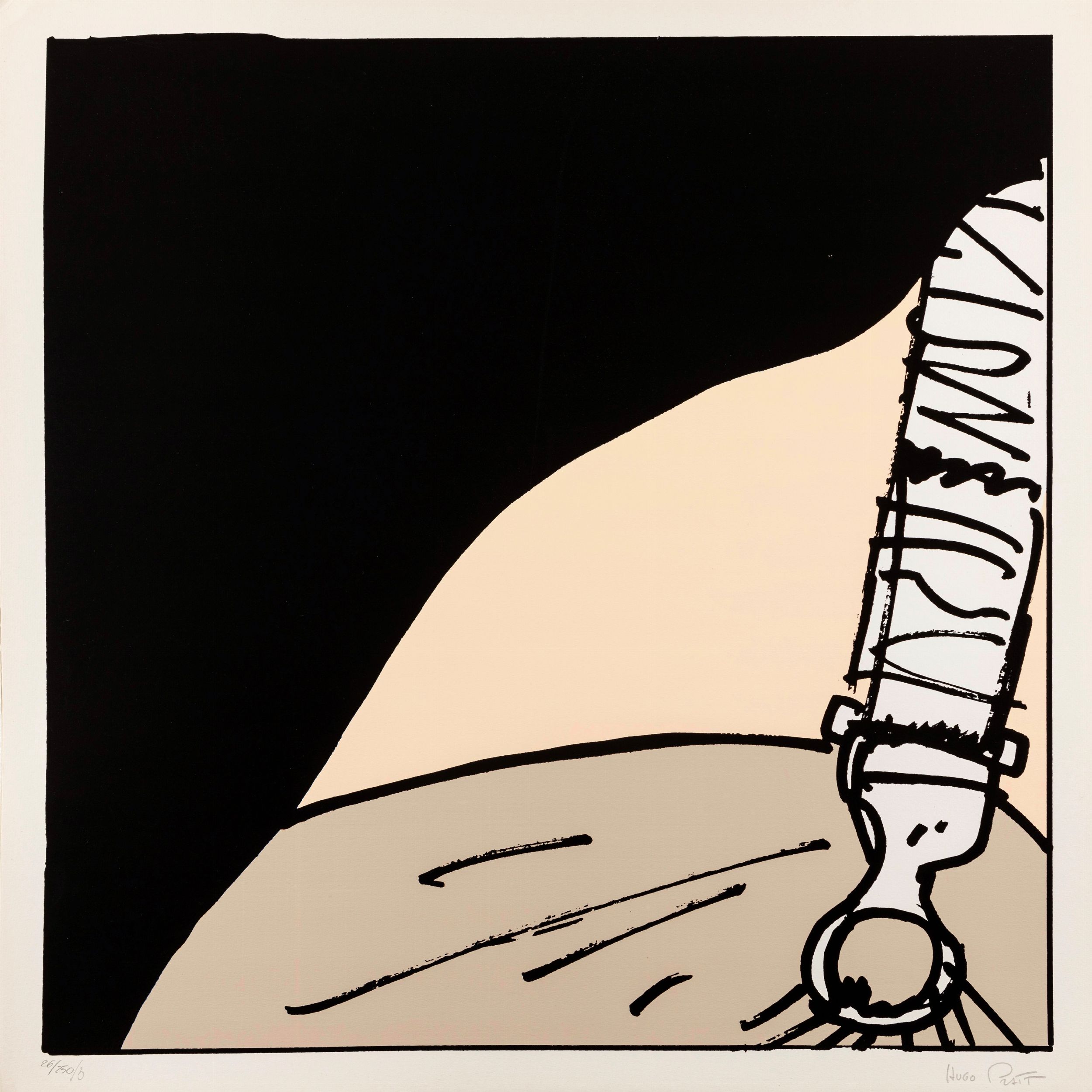 serigrafia su cartoncino, 70 x 70 cm ciascuno 1985 Portfolio Tango completo delle 12 serigrafie tirate a 250 esemplari numerate in cifra araba (nostro esemplare n. 26/250) e del raro cofanetto editoriale, edito dagli Editori del Grifo nel 1985. Serigrafie in ottime condizioni, cofanetto telato con lievi abrasioni e uno strappo restaurato ad un angolo. Firmate a matita da Pratt e numerate.