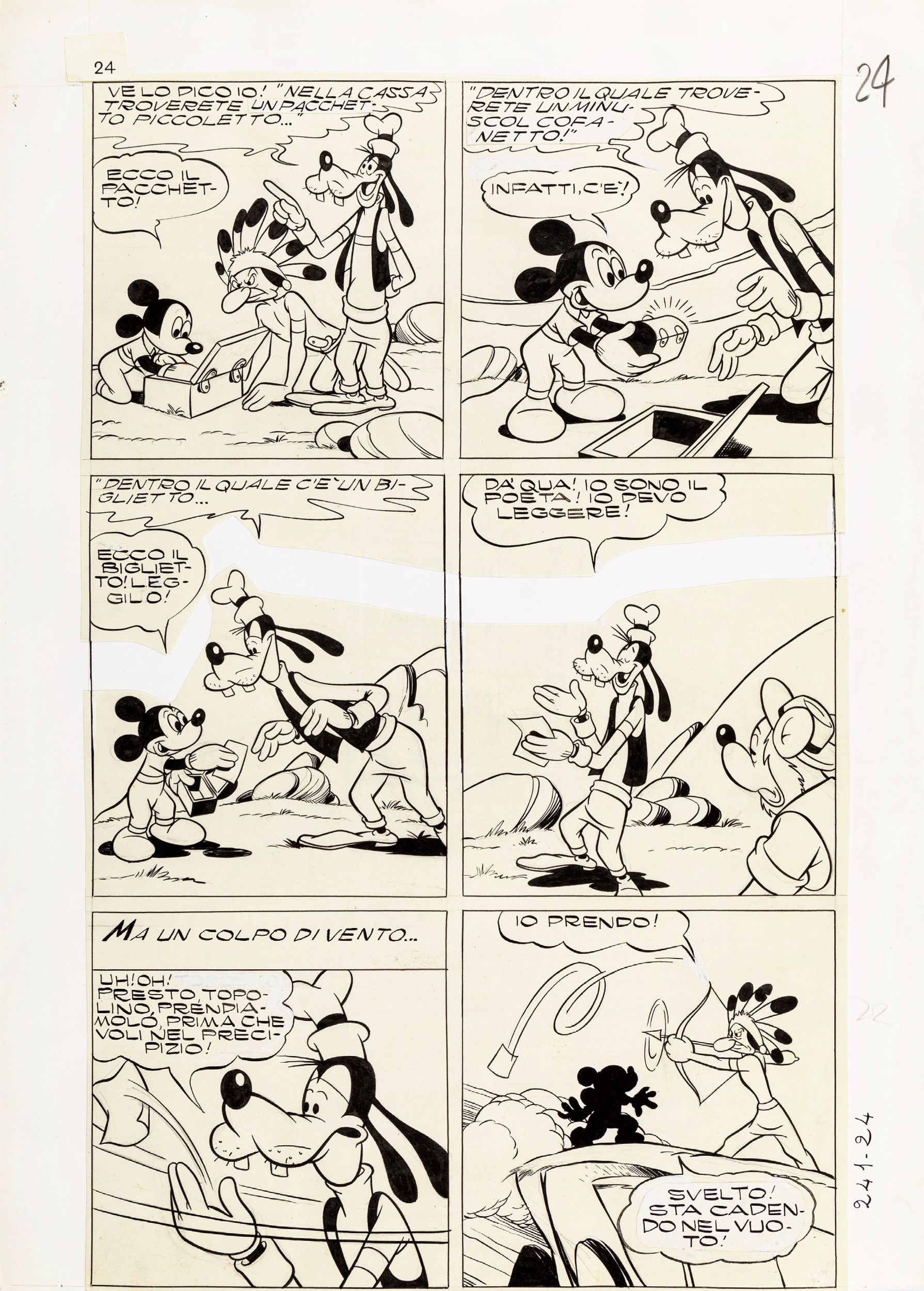 matita e china su cartoncino rimontato, 27,5 x 38,5 cm 1955 Tavola originale realizzata da Carpi per Topolino e il topazio dello zio in ozio, edita per la prima volta su Topolino n. 121 nel 1955 e successivamente sugli Albi della Rosa n. 241 a pag. 24 nel giugno 1959.