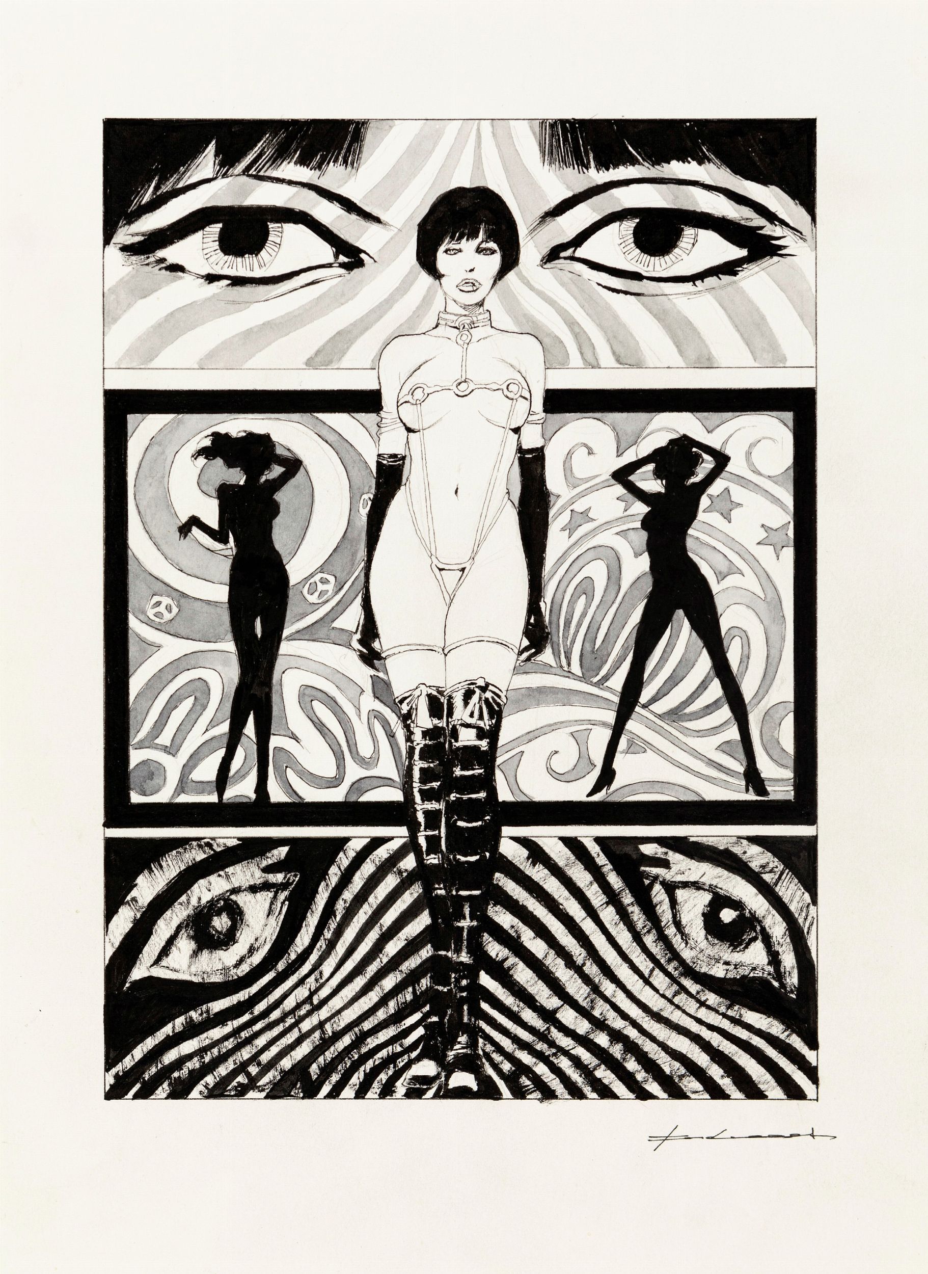 2016 Illustrazione originale realizzata da Roi come omaggio alla seducente Valentina di Crepax e pubblicata sul volume Viva Valentina! edito dalle Edizioni BD nel 2016. Firmata.