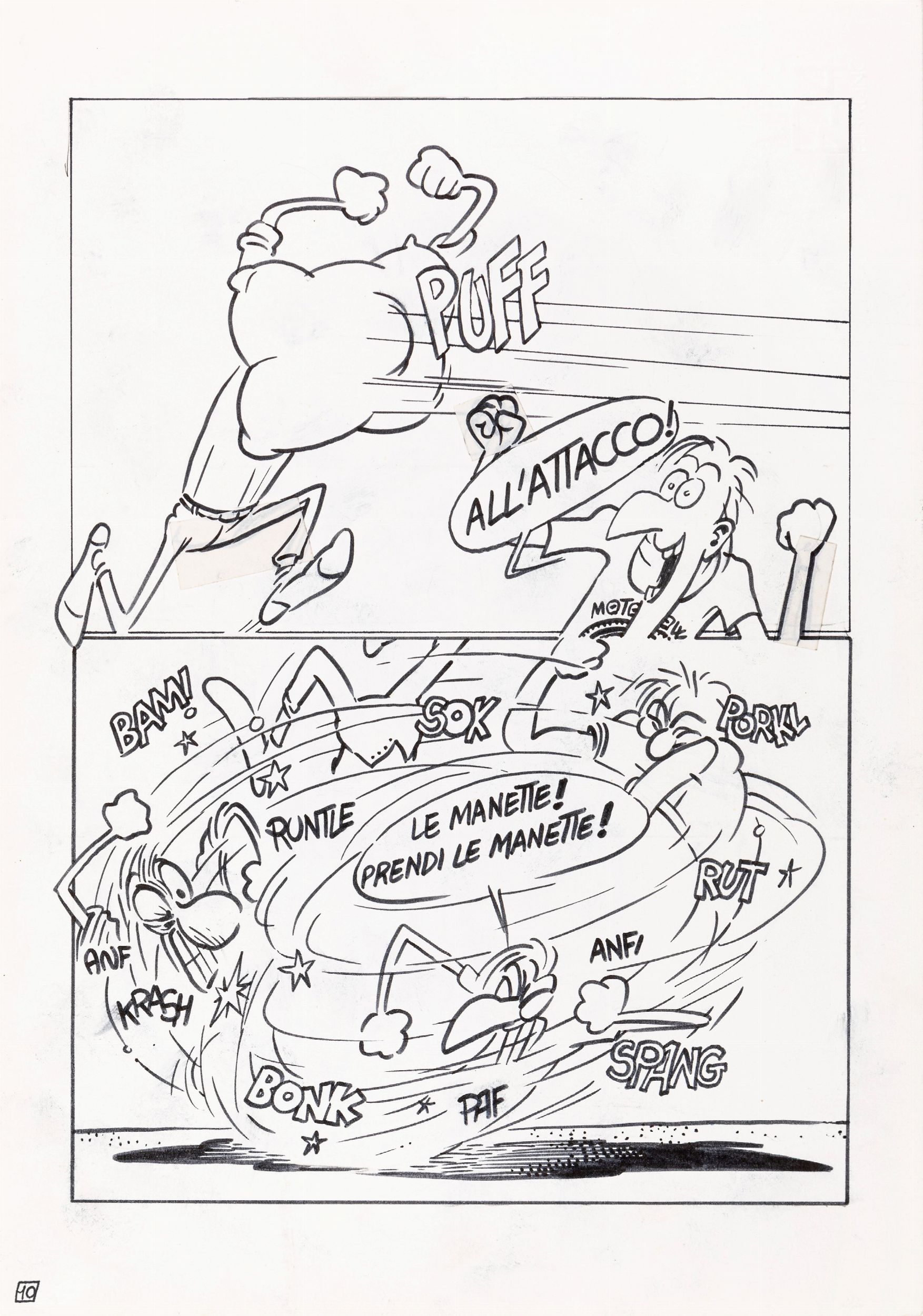 matita, china e pennarello su cartoncino, 24 x 34 cm 1983 Tavola originale realizzata da Pazienza per La proprietà transitiva dell'uguaglianza, pag. 10 della quinta avventura di Zanardi, pubblicata per la prima volta sul volume Zanardi edito come supplemento a Frigidaire n. 5 dalla Primo Carnera Editore nel 1983. Personaggio simbolo dell´arte di Pazienza, Zanardi fece la sua prima apparizione due anni prima sempre sulla rivista Frigidaire. Di estrema rarità.