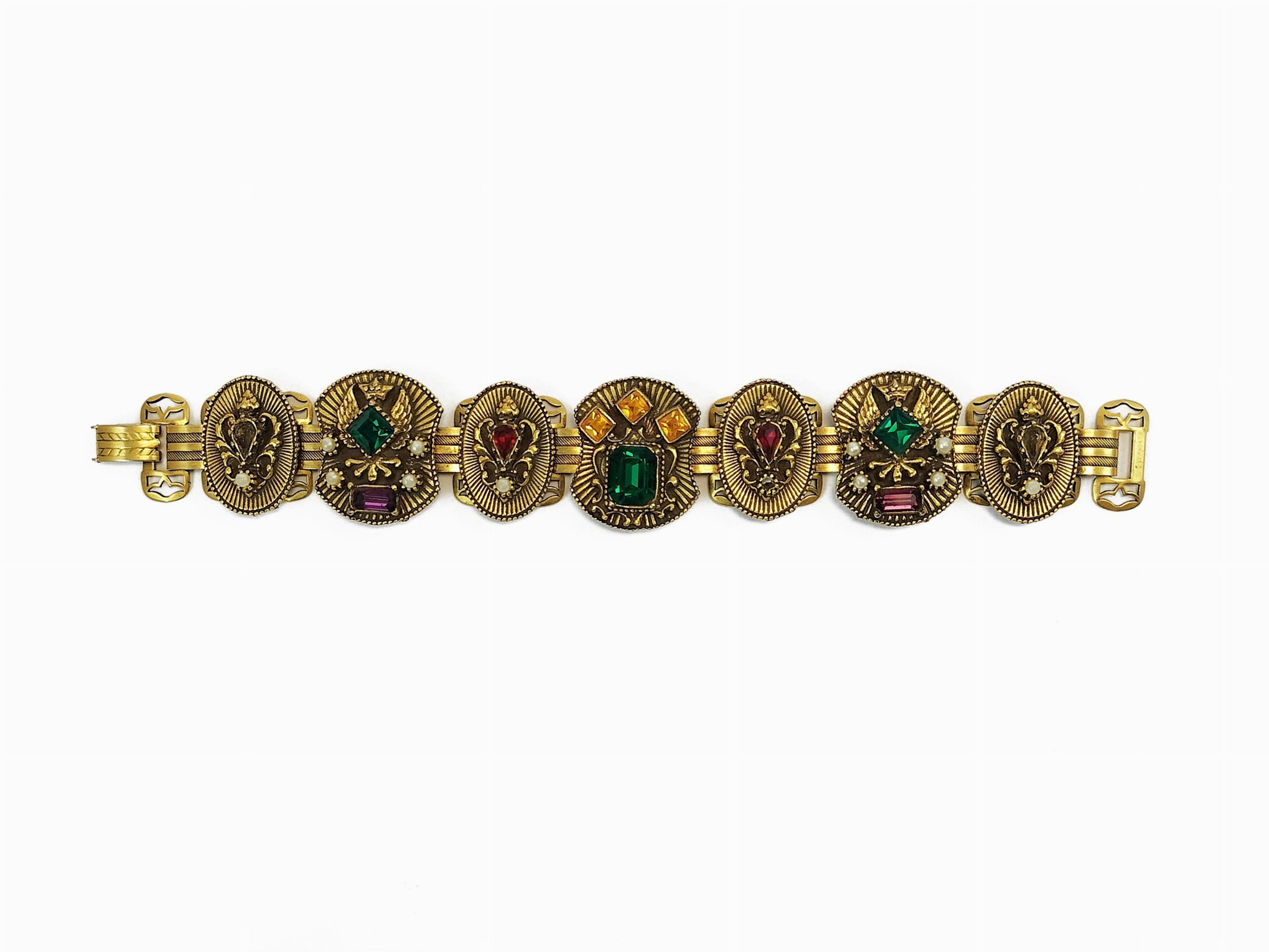 1940 in metallo giallo con motivi di stemmi impreziositi da strass colorati