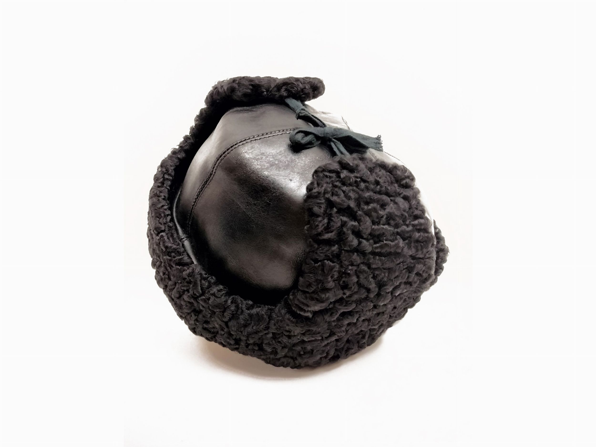 Cappello russo in pelle e pelliccia di astrakan nero