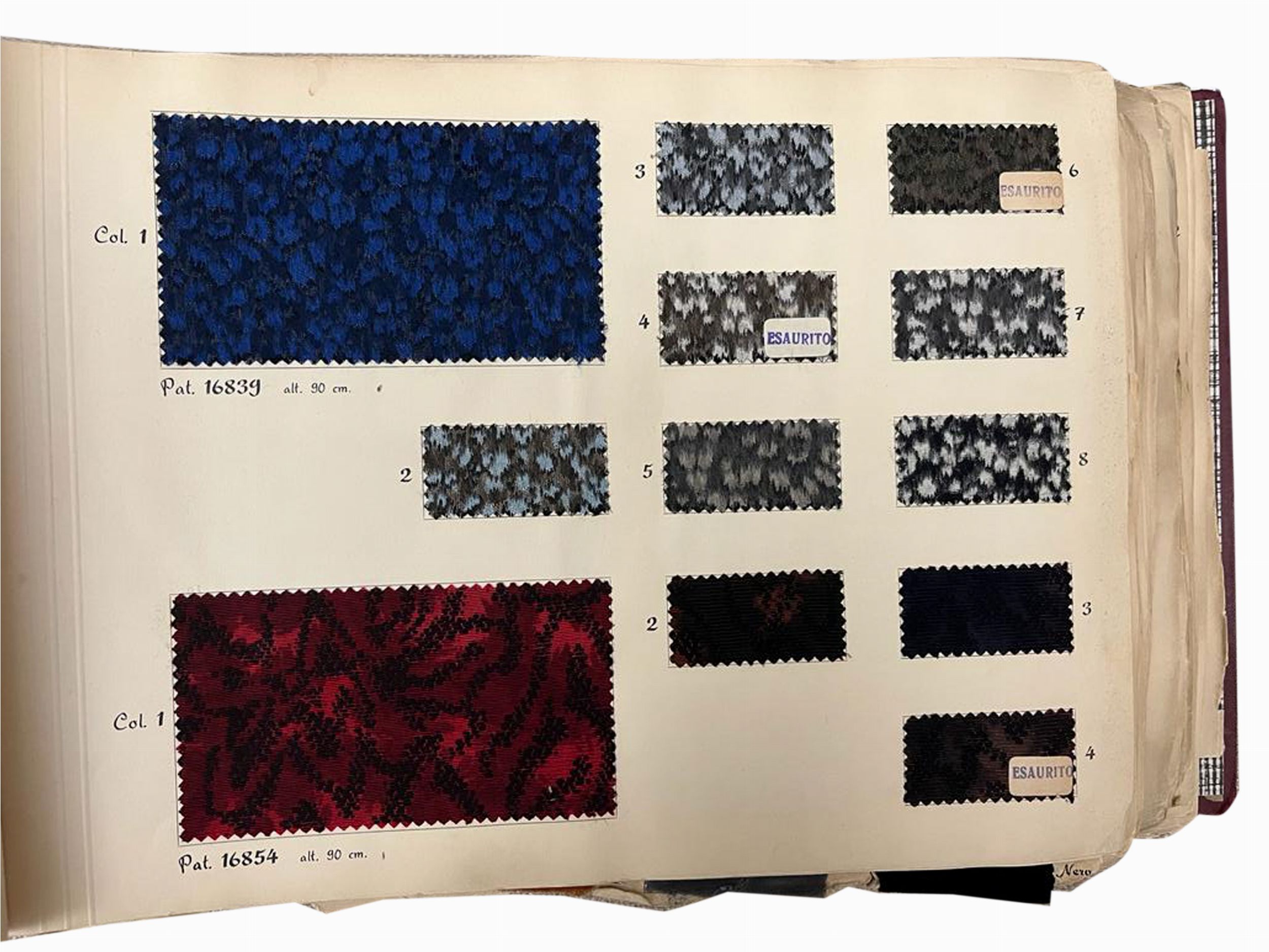 Anni Quaranta/Settanta Campionario Broccati Seterie Lanerie Novità Collezione Autunno Inverno 1955-56 (34 cartelle). Campionario Société des Nouveautés Textiles, Paris, Jerseys Hiver 1978 (26 cartelle). Due campionari L.W.L.& S. , Rouen, Anni Quaranta/Cinquanta (Toile Nationale 41XA E, esportation). Difetti (4)