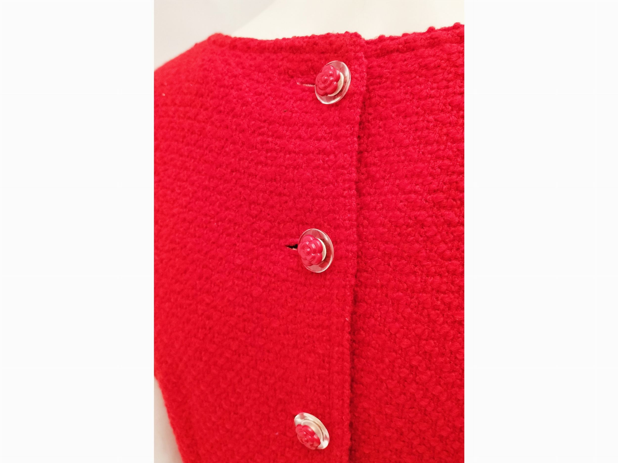 composto da una giacca lunga e avviata a doppio petto con quattro tasche a patta, bottoni con logo, fodera a stampa con logo, ed un tubino senza maniche con orli e dettagli sfrangiati, abbottonato sulla schiena