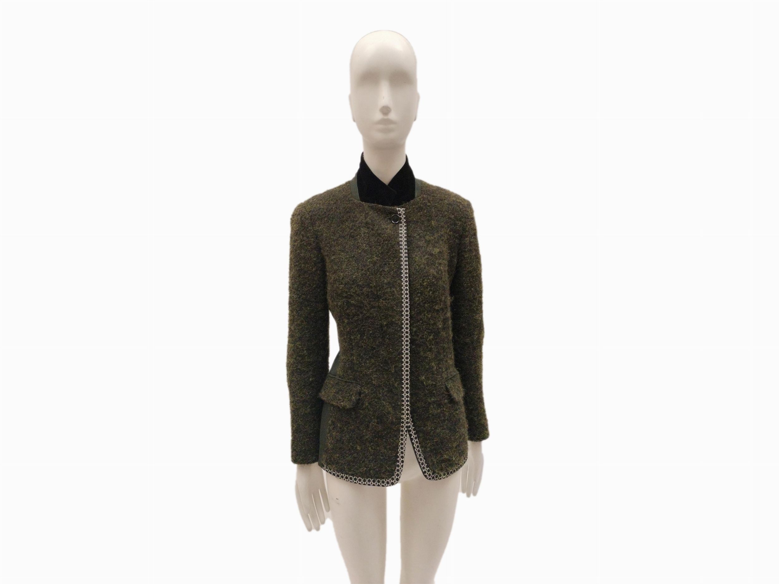 chiusura con cerniera, colletto e profili in velluto, bordure rifinite in passamaneria