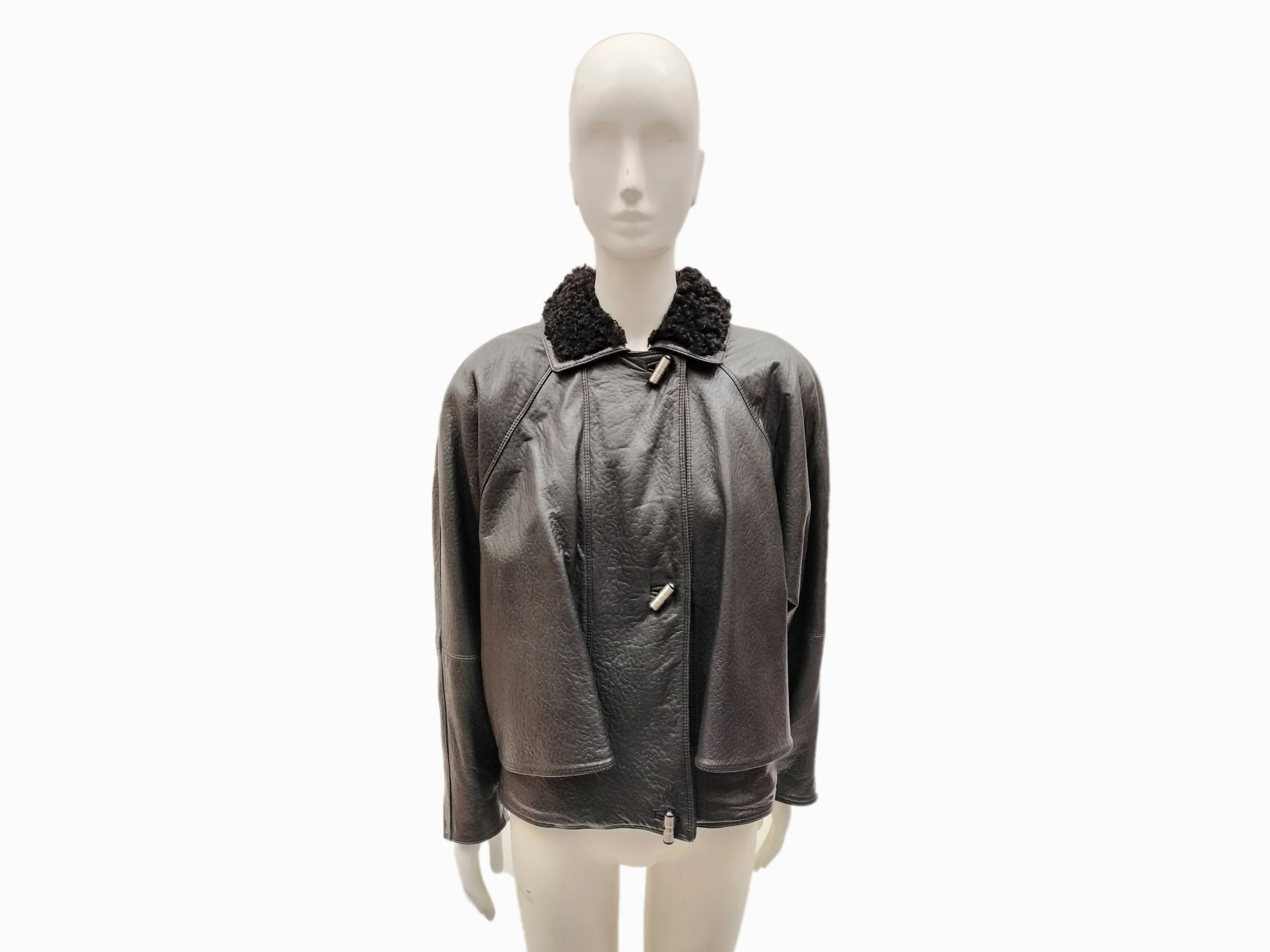 Anni Novanta maniche raglan a formare un motivo a mantellina, chiusura con alamari e cerniera, collo in pelliccia