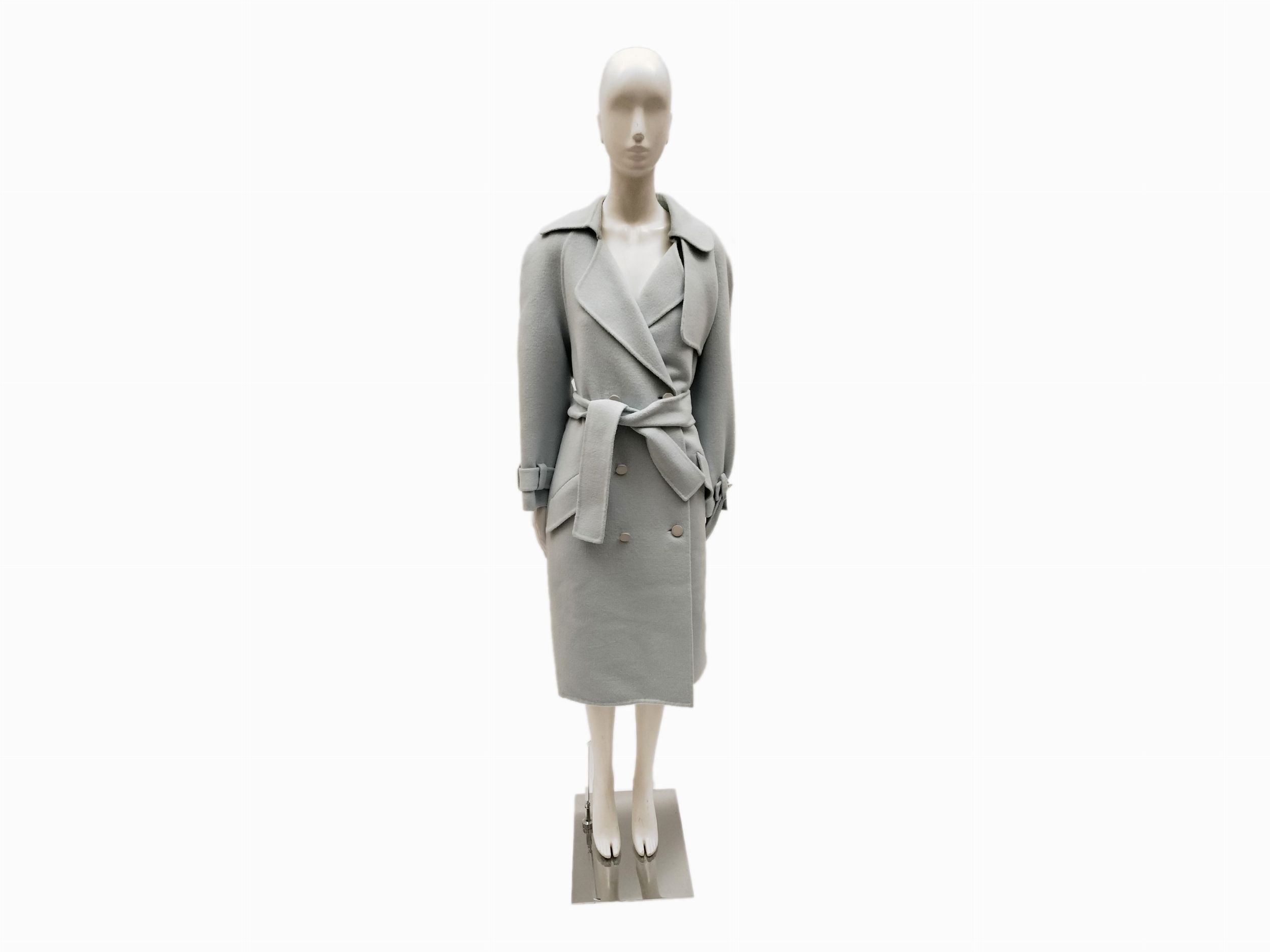 Mila Schon, Cappotto in panno di lana e angora celeste pallido