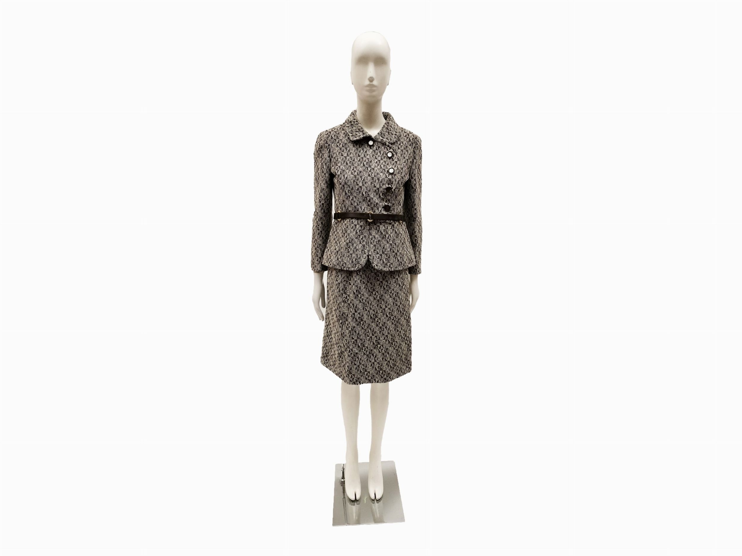 Philippe Venet, Tailleur in tessuto di lana geometrico bianco e marrone