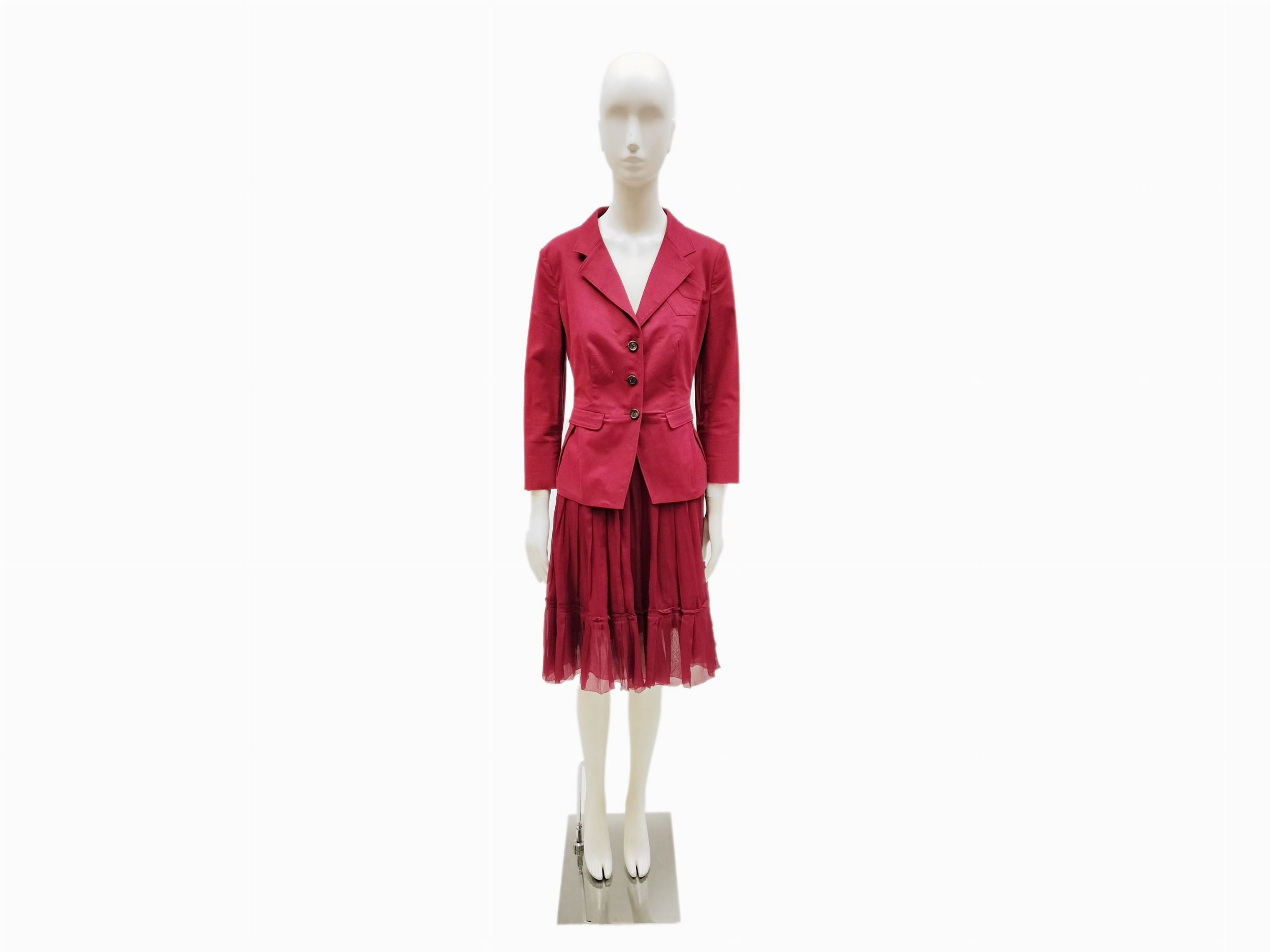 composto da giacca avvitata con maniche a tre quarti e gonna in voile con balze e sottogonna