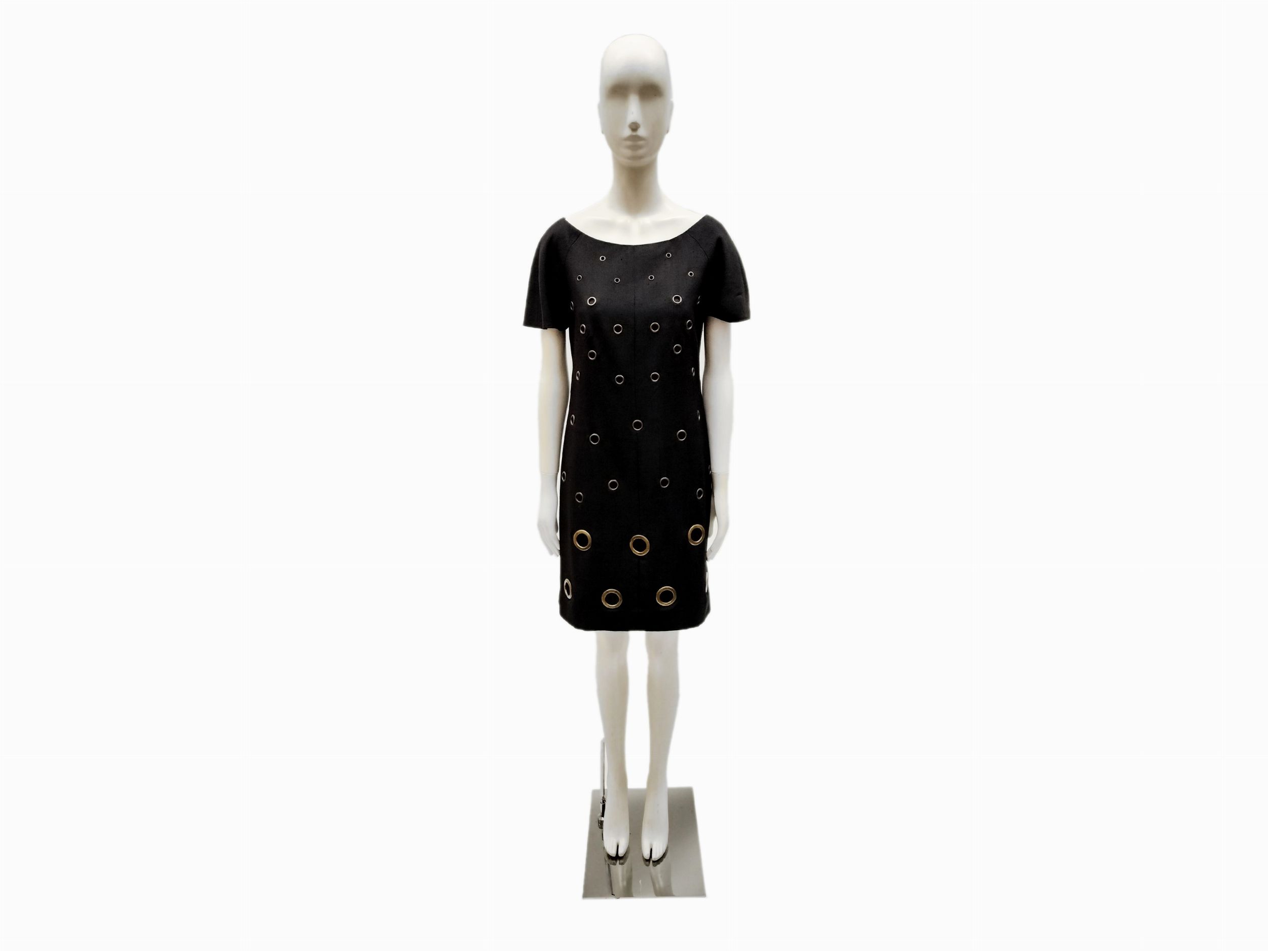 Shannon McLean, Abito corto in tessuto nero di lana e seta