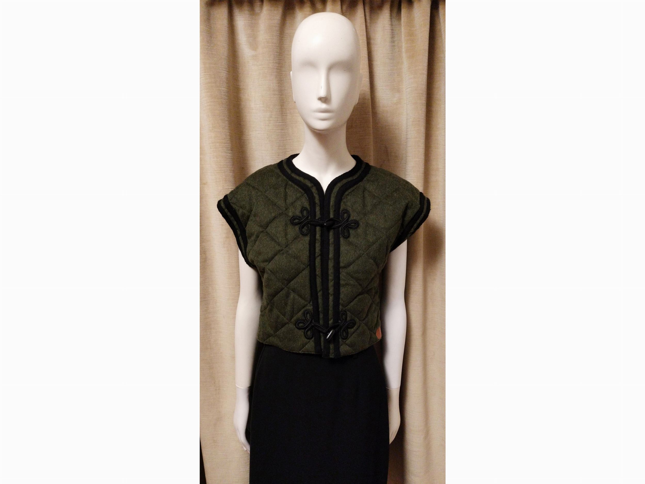 chiusura ad alamari, finiture in passamaneria e manica corta
