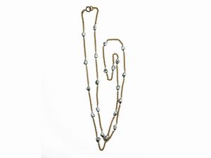 cm 7x7,5 realizzata in metallo giallo, perle simulate e smalti, raffigurata mentre regge uno specchio sospesa [..]