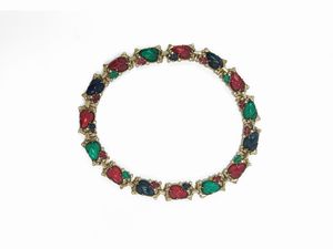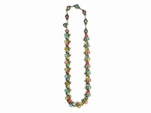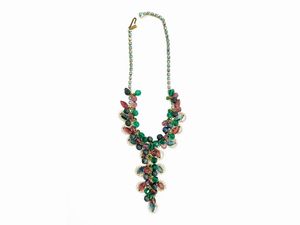 Hattie Carregie, collana con perline a grappolo verdi e viola