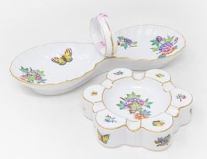 Portasalatini e posacenere in porcellana policroma Herend Queen Victoria