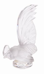 Scultura in cristallo trasparente e satinato Lalique Gallo