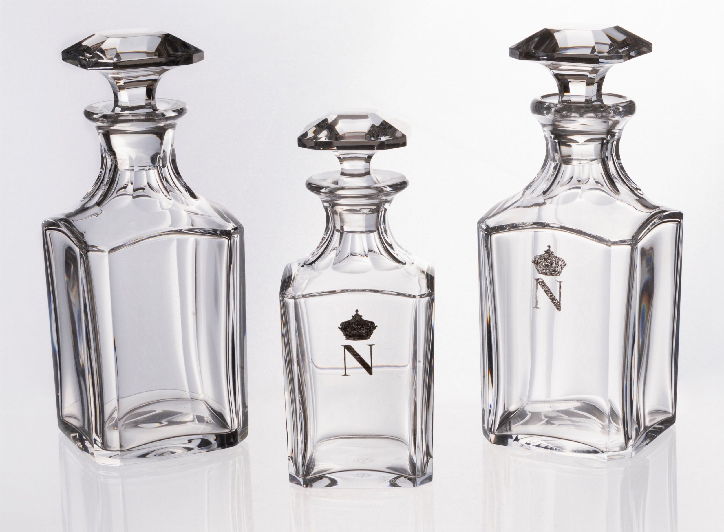Tre bottiglie da whisky in cristallo incolore Baccarat