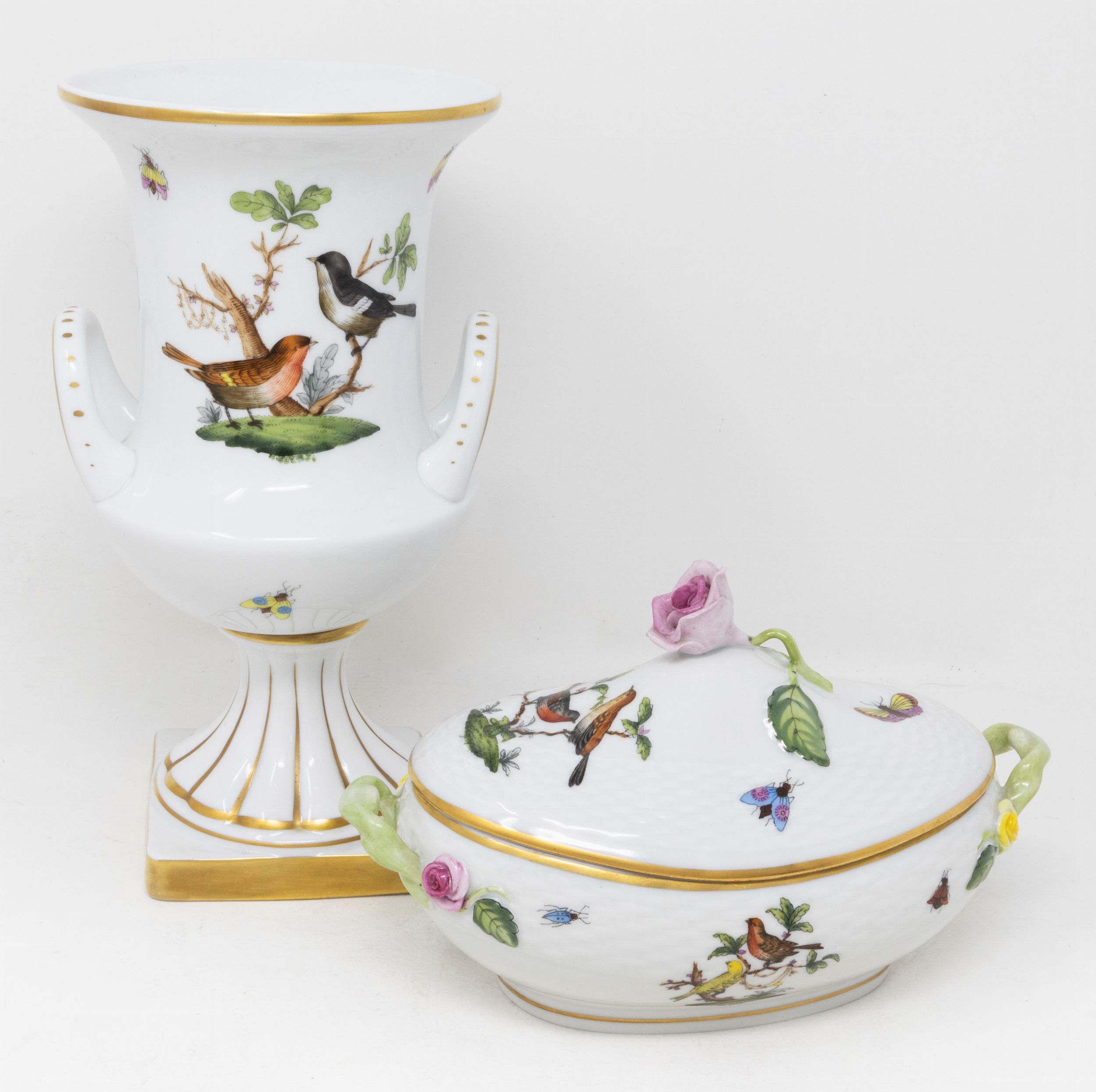 Vaso e scatola in porcellana policroma Herend Rothschild