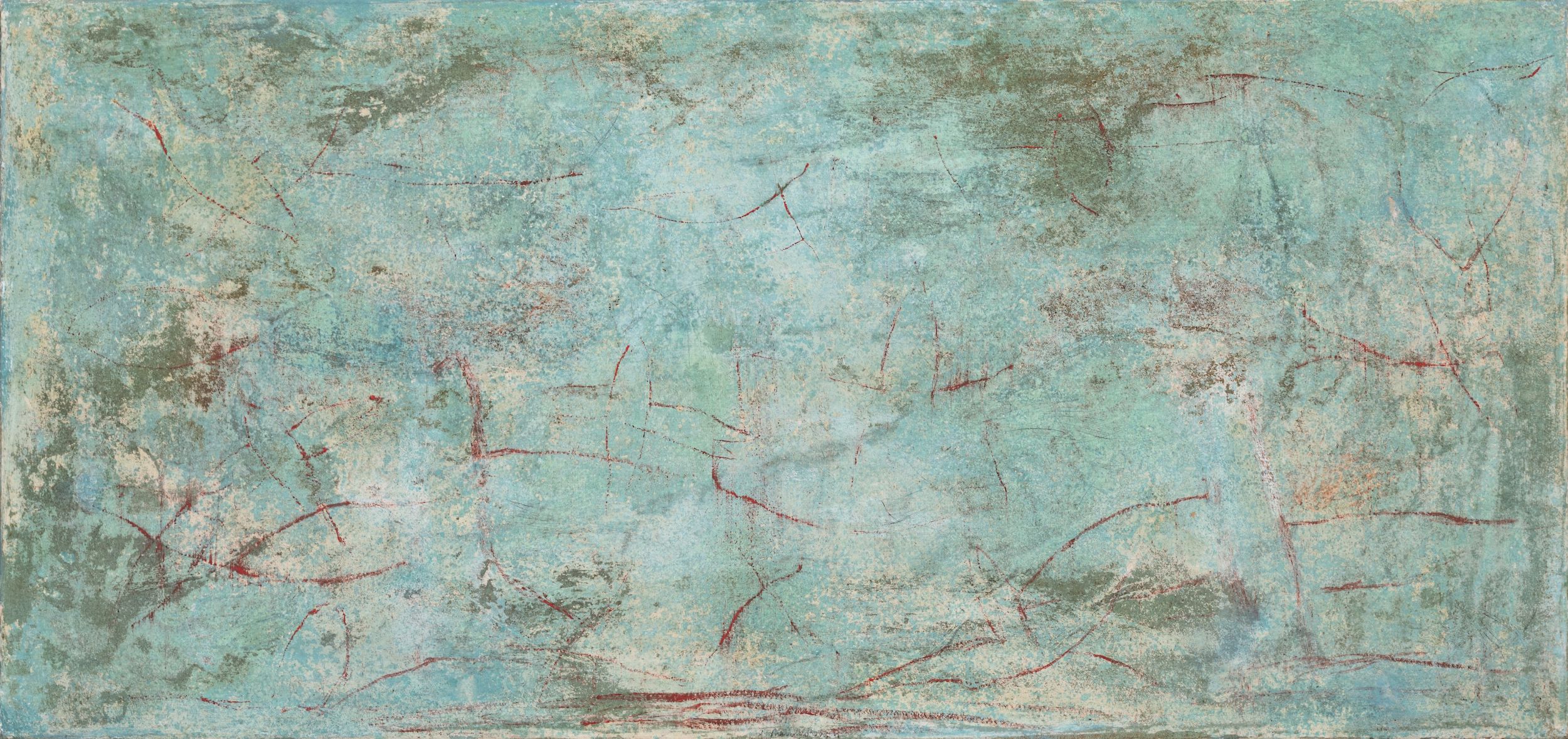 tecnica mista su tavola, cm. 50x104x5