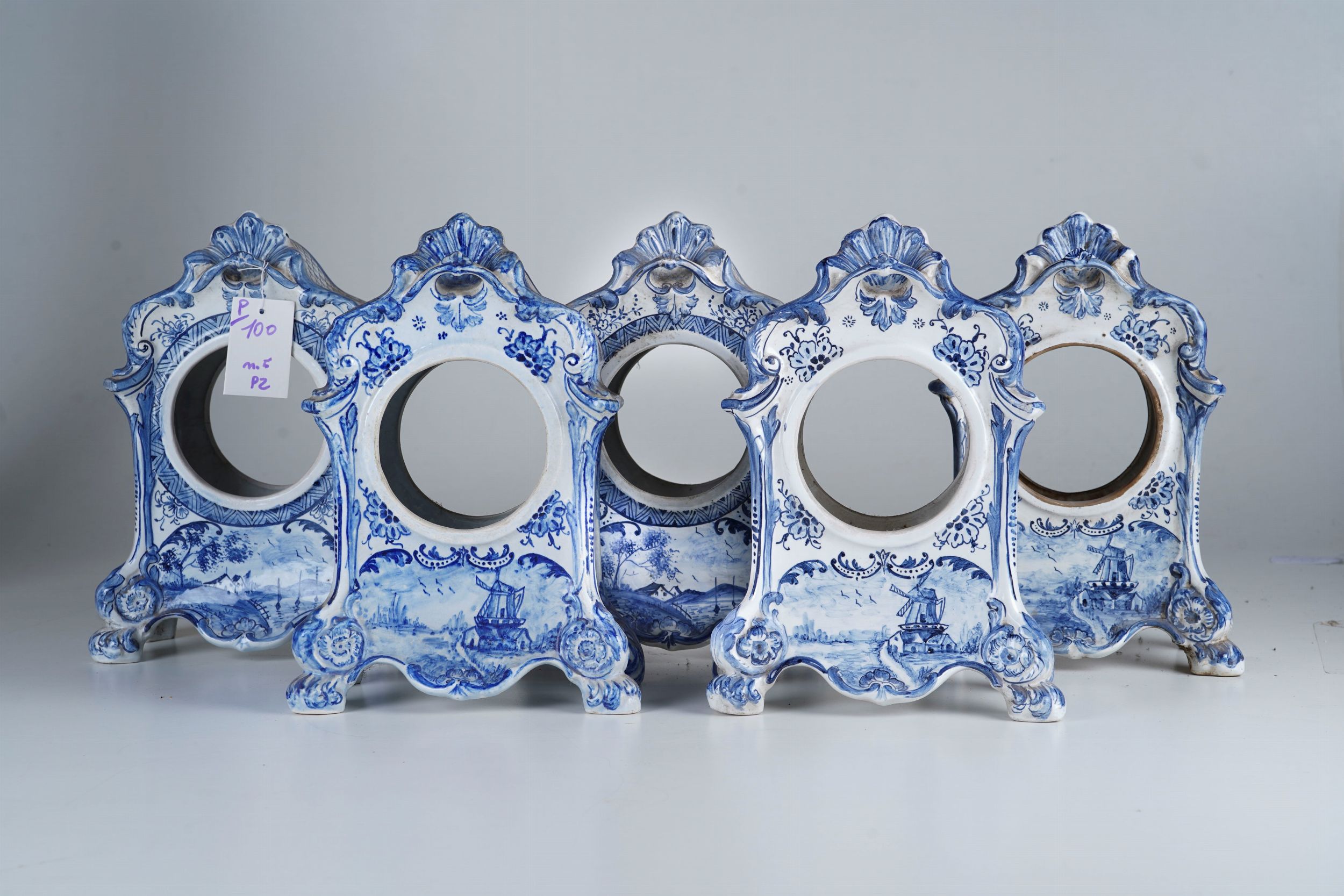Lotto di n. 5 casse in maiolica dipinta tipo Delft