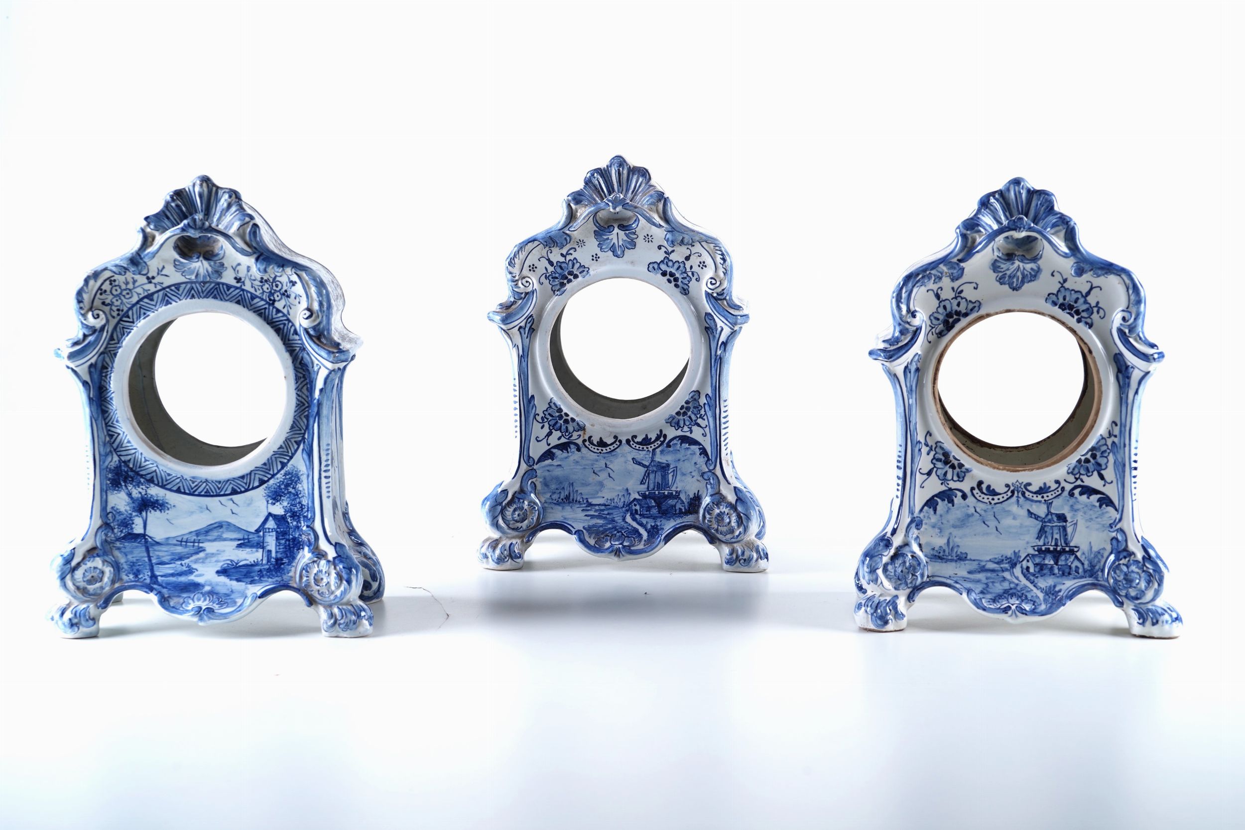 Lotto di n. 5 casse in maiolica dipinta tipo Delft