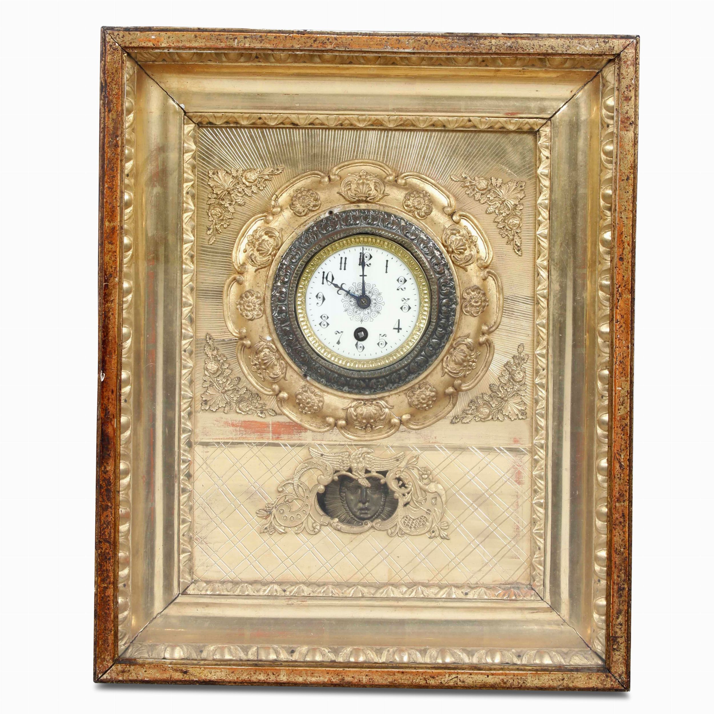 Orologio da parete in legno intagliato e dorato, XIX secolo