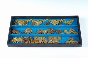 Scatola contenente numerosi fregi di pendolaria e una matrice per “capitello”