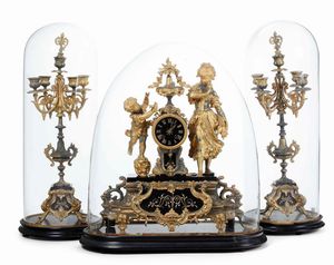 Trittico da camino composto da coppia di candelabri e un orologio in porcellana [..]