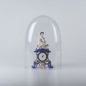 Pendoletta in porcellana dipinta sormontata da figura rappresentante Venere accosciata, [..]