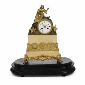 Pendola romantica in bronzo dorato e brunito, raffigurante fanciulla. Francia XIX [..]