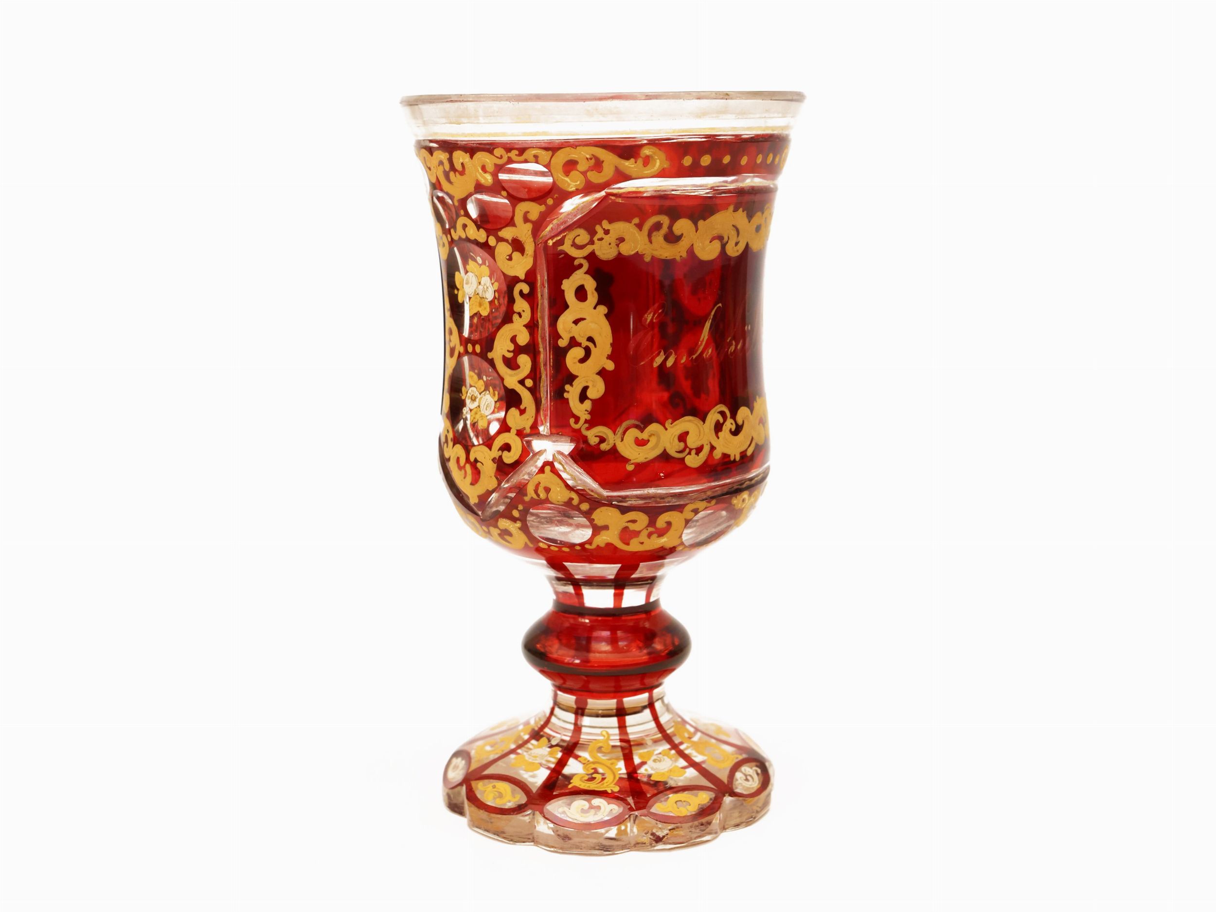 Calice in cristallo di Boemia incamiciato a riserve color rubino