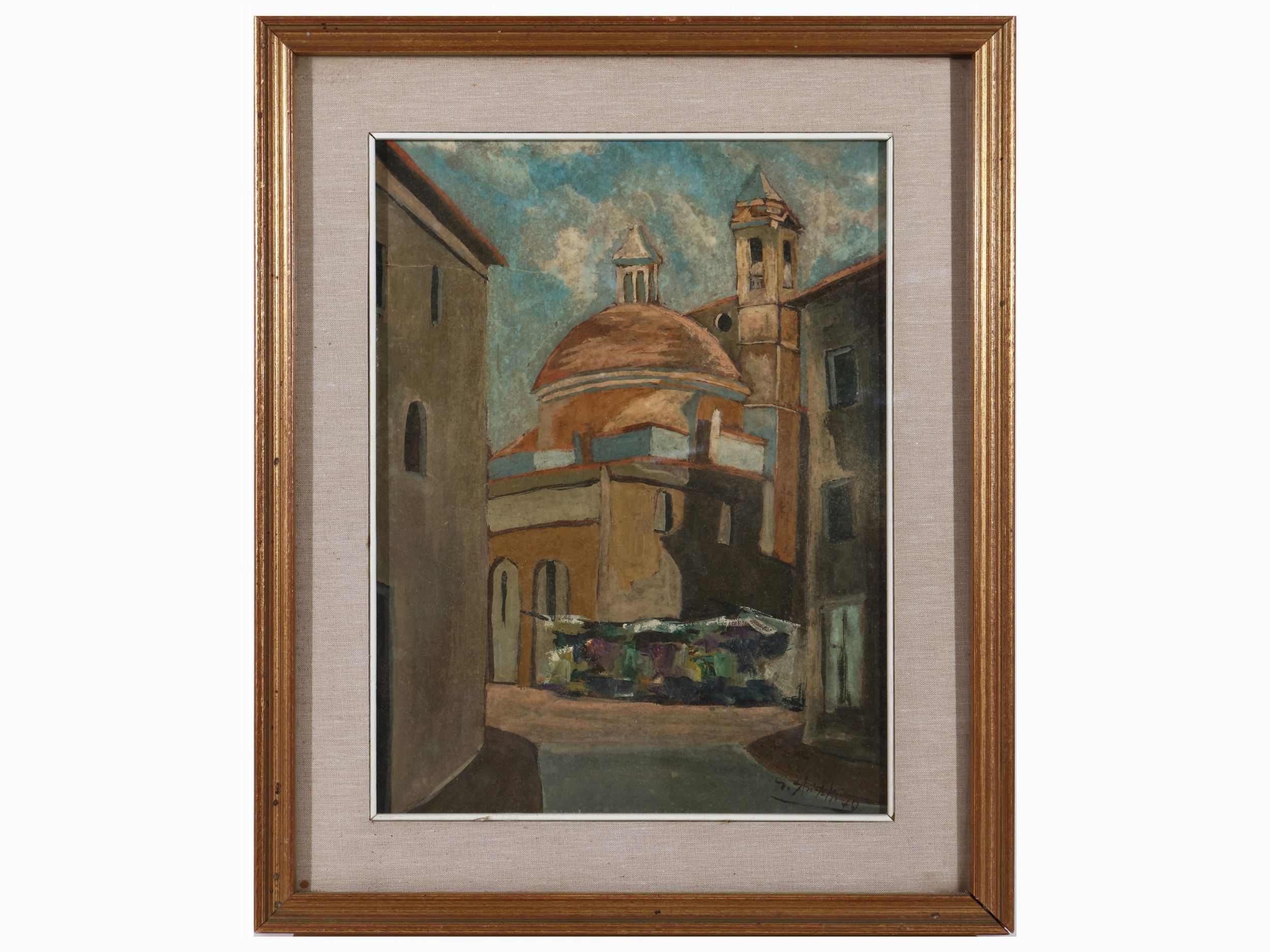 XX secolo olio su faesite, firmato e datato 79, in cornice